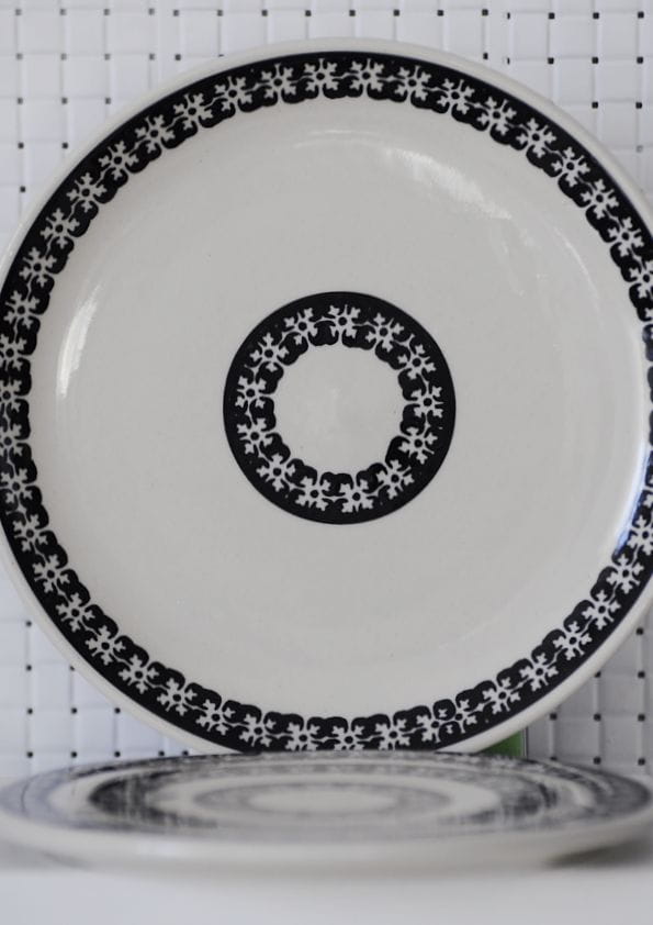 Ceramiczna podstawka z czarnym ornamentem – ręcznie zdobiona ceramika użytkowa z Bolesławca I