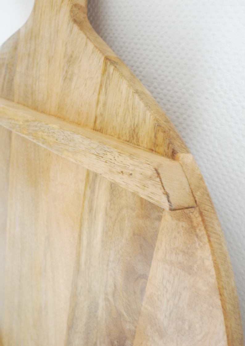 Dzięki otworowi w rączce łatwo ją przechowywać. Dwie podpory od spodu zwiększają stabilność. Deska pasuje do wnętrz w stylu skandynawskim, rustykalnym i nowoczesnym.