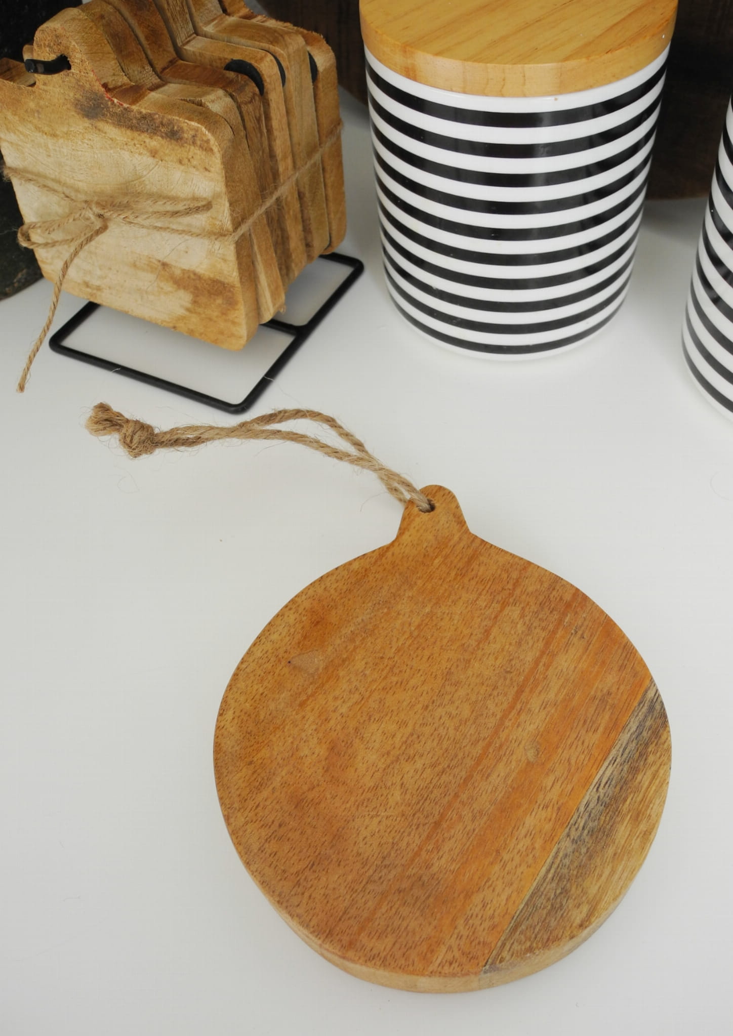 Drewniane dodatki zawsze ocieplają wnętrze. Miłe i ciepłe w dotyku, wprowadzają do domu namiastkę natury. Nawet najmniejszy kawałek drewna jest lepszy od sztucznych tworzyw, a ręcznie obrabiane detale zyskują niepowtarzalny urok i styl. Ta mała, okrągła deseczka to uroczy dodatek do Twojej kuchni, który zachwyci funkcjonalnością i estetyką.
