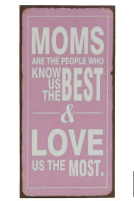 Magnes na lodówkę prostokątny różowy z białym napisem MOMS – stylowy akcent do Twojej kuchni