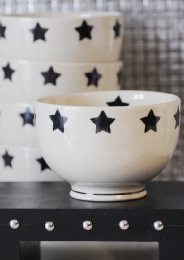 Każda ceramika bolesławiecka – miseczka ręcznie malowana to mały dowód na to, że rzemiosło wciąż ma się świetnie. Wzór z czarnymi gwiazdami został wykonany ręcznie, dzięki czemu każda sztuka jest unikalna.