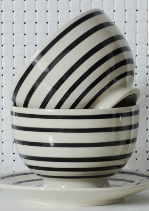 Wyraziste paski sprawiają, że te miseczki z bolesławca idealnie wpisują się w nowoczesne aranżacje stołu, ale też pięknie kontrastują z naturalnym drewnem i lnianymi tekstyliami. To wzór dla tych, którzy lubią klasykę w nowym wydaniu — bez banału, za to z charakterem.