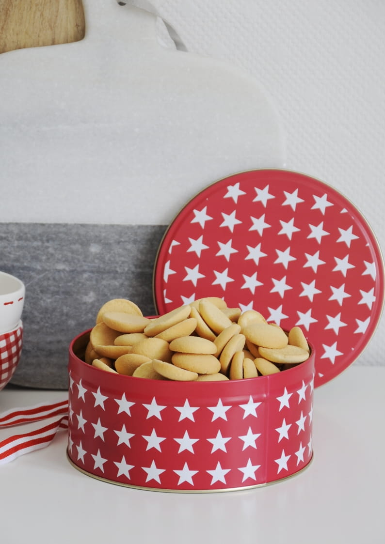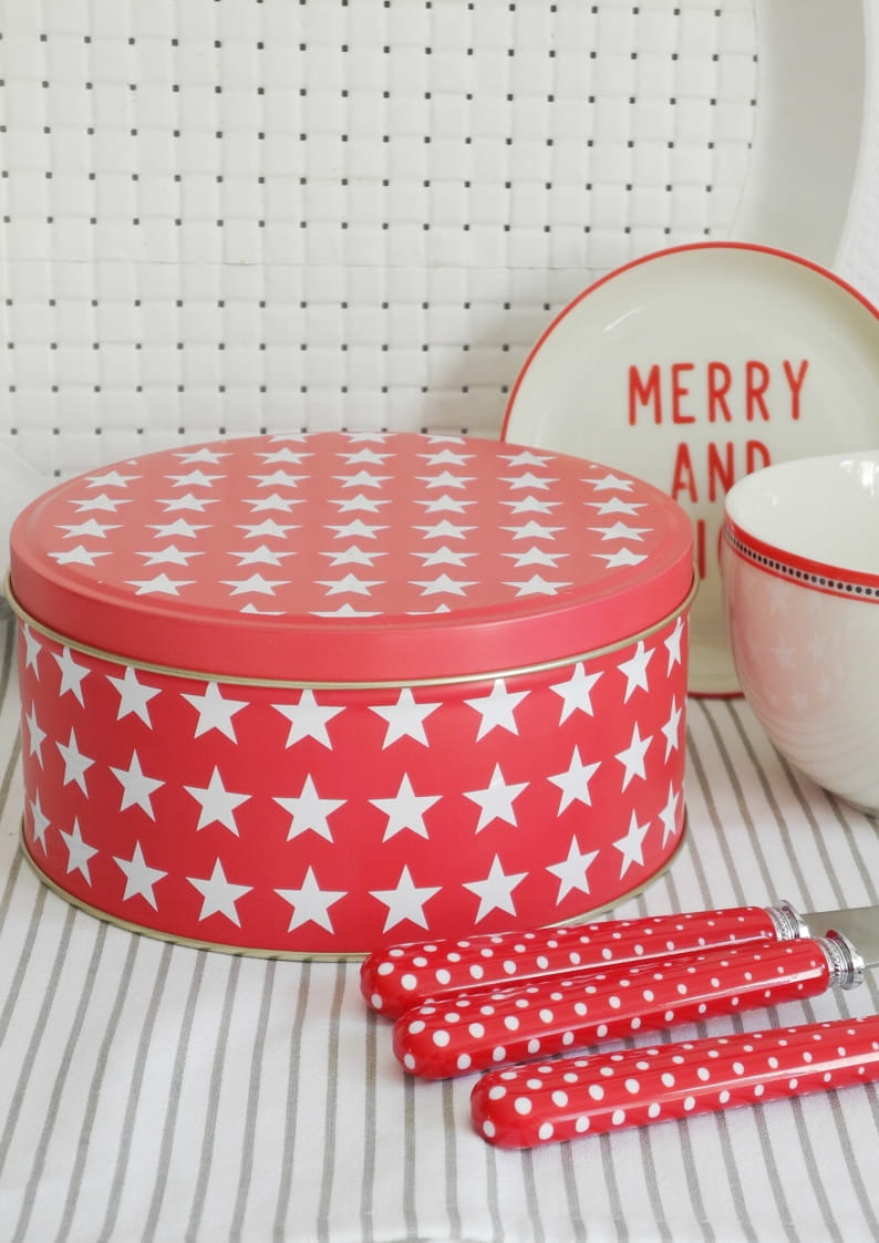 Puszka okrągła czerwona w białe gwiazdki – magia świątecznej atmosfery przez cały rok