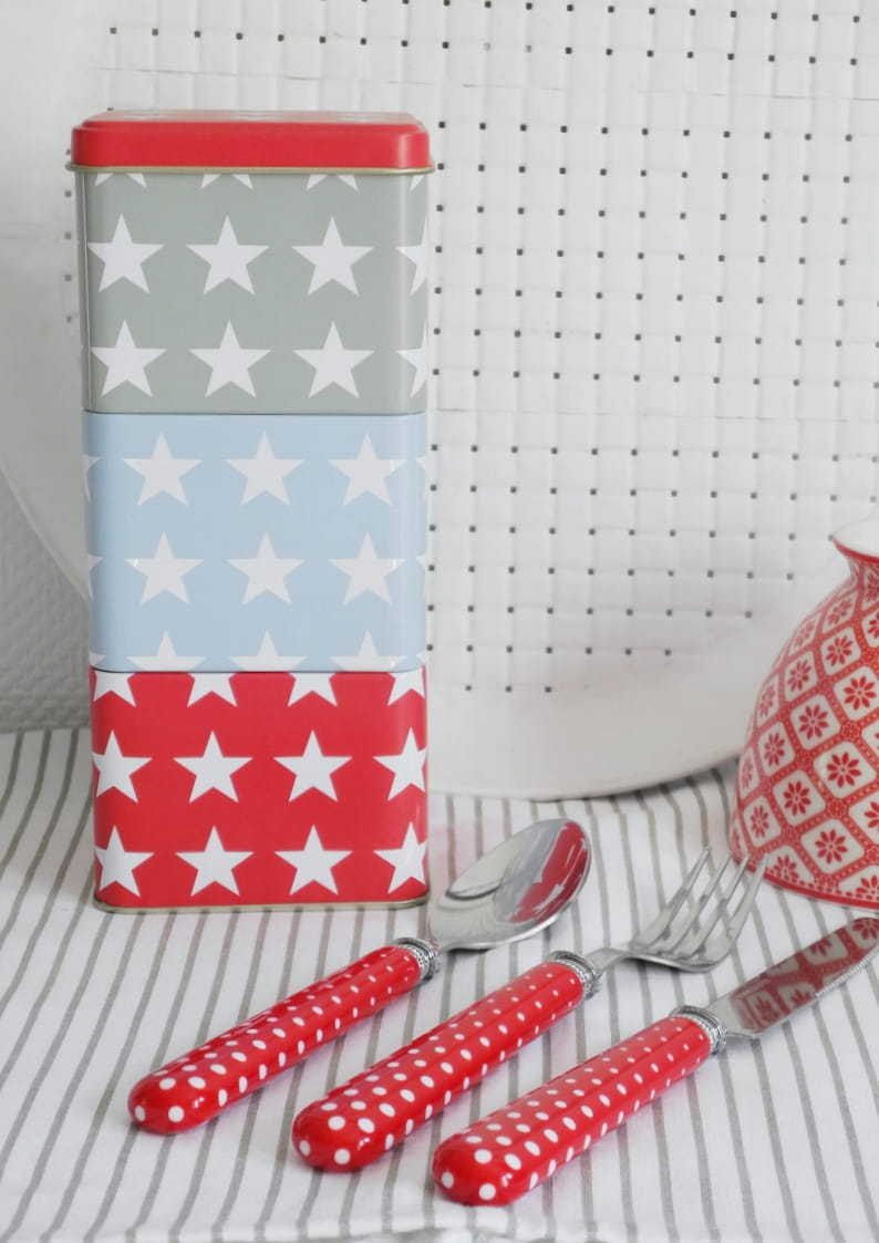 Kolorowa puszka dekoracyjna w gwiazdki – praktyczny organizer trzy w jednym