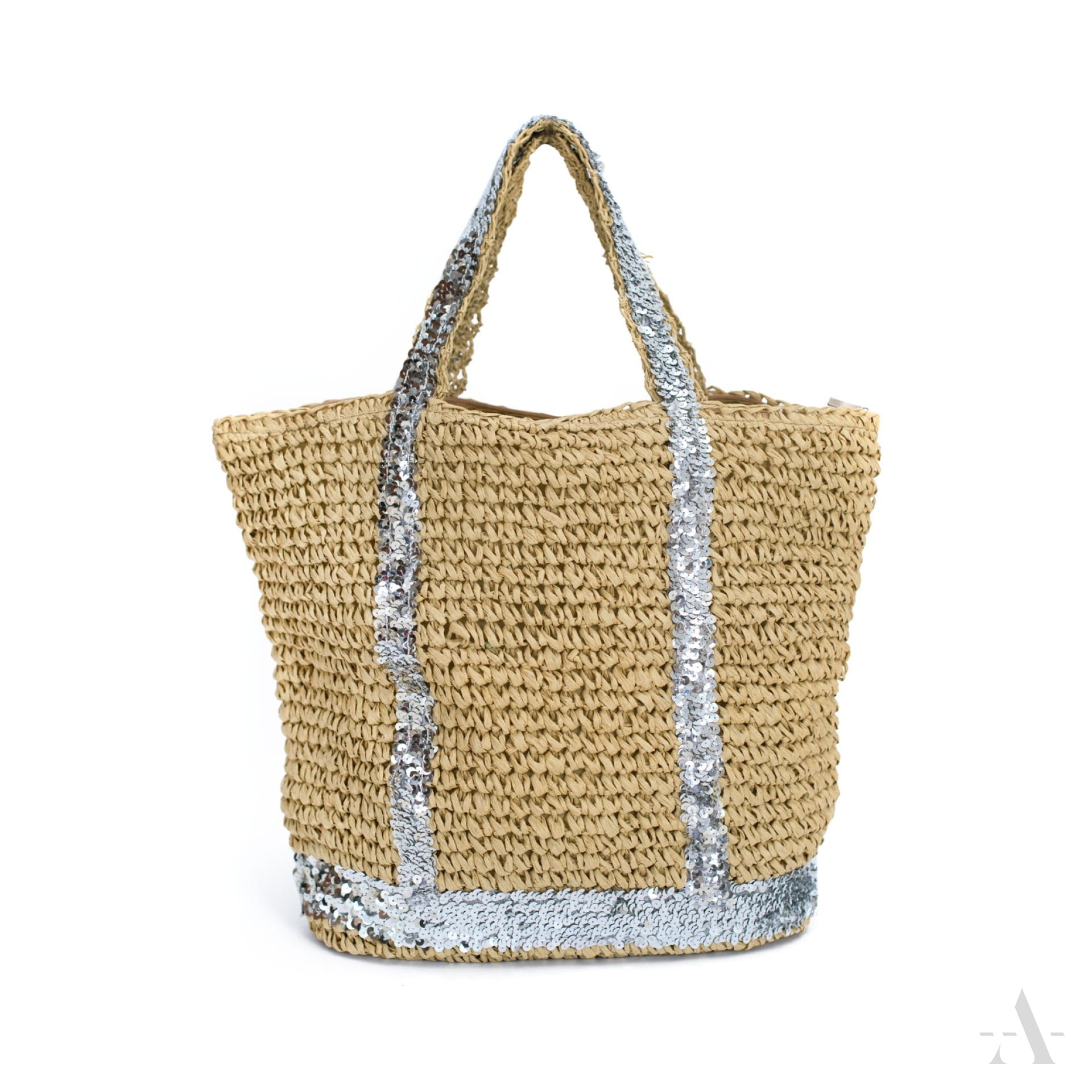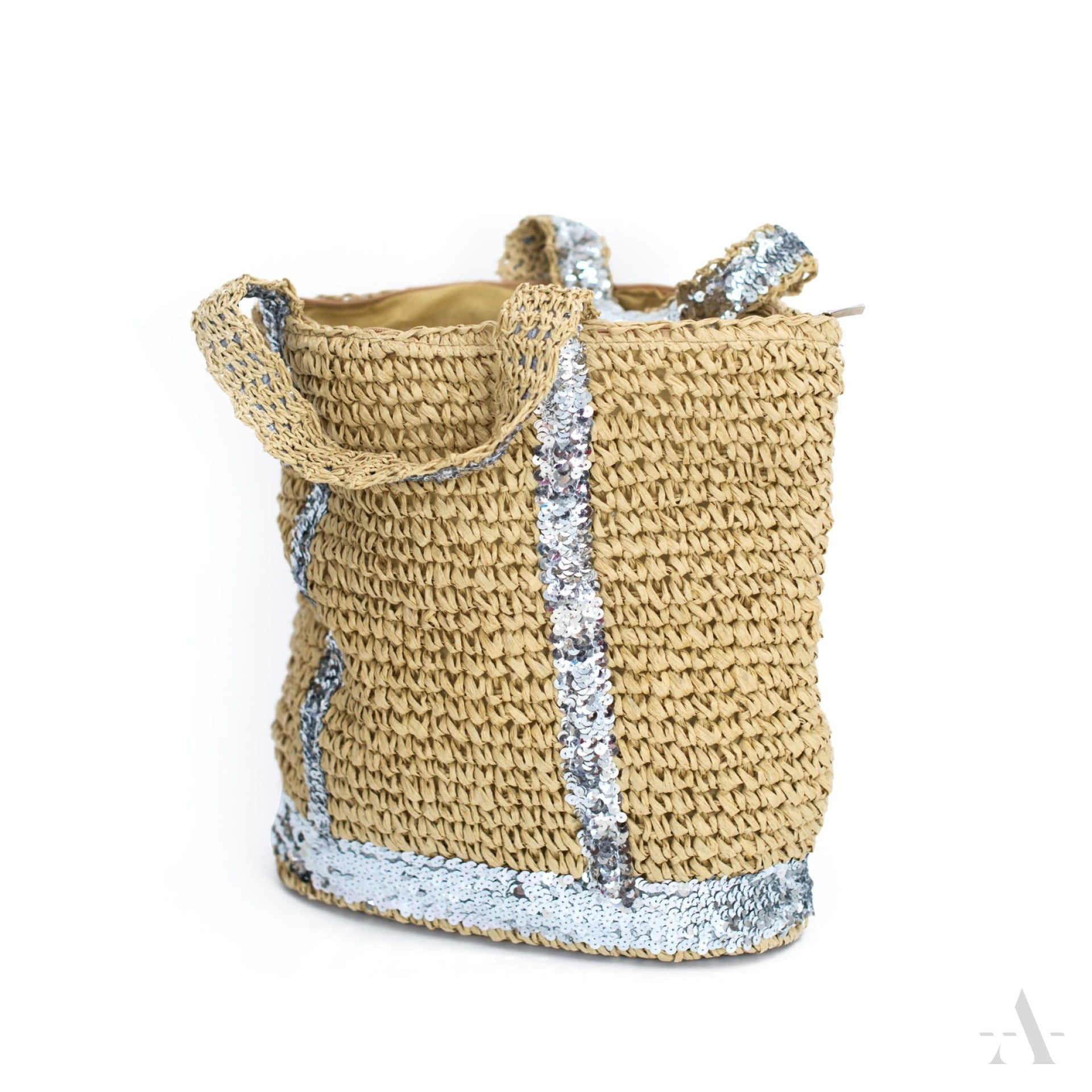 Torba letnia ze srebrnymi wstawkami to idealny wybór dla kobiet, które uwielbiają błyszczeć! Ozdobiona cekinowymi pasami, torba doda Twojej stylizacji letniego blasku. Doskonale sprawdzi się na plaży, ale również jako dodatek do letnich, wieczorowych outfitów typu glamour.