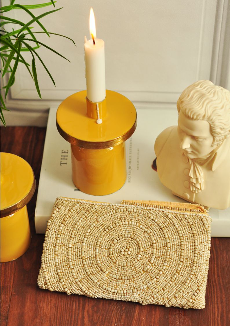 Lubisz otaczać się wyjątkowymi dodatkami? Kosmetyczka naszywan koralikami BEIGE to prawdziwa mała perełka – ręcznie naszywane koraliki w odcieniu kości słoniowej tworzą efektowne, hipnotyzujące kręgi, które przyciągają wzrok i dodają elegancji. To nie tylko praktyczny, ale i niezwykle stylowy dodatek, który sprawdzi się zarówno na co dzień, jak i podczas wyjątkowych okazji.