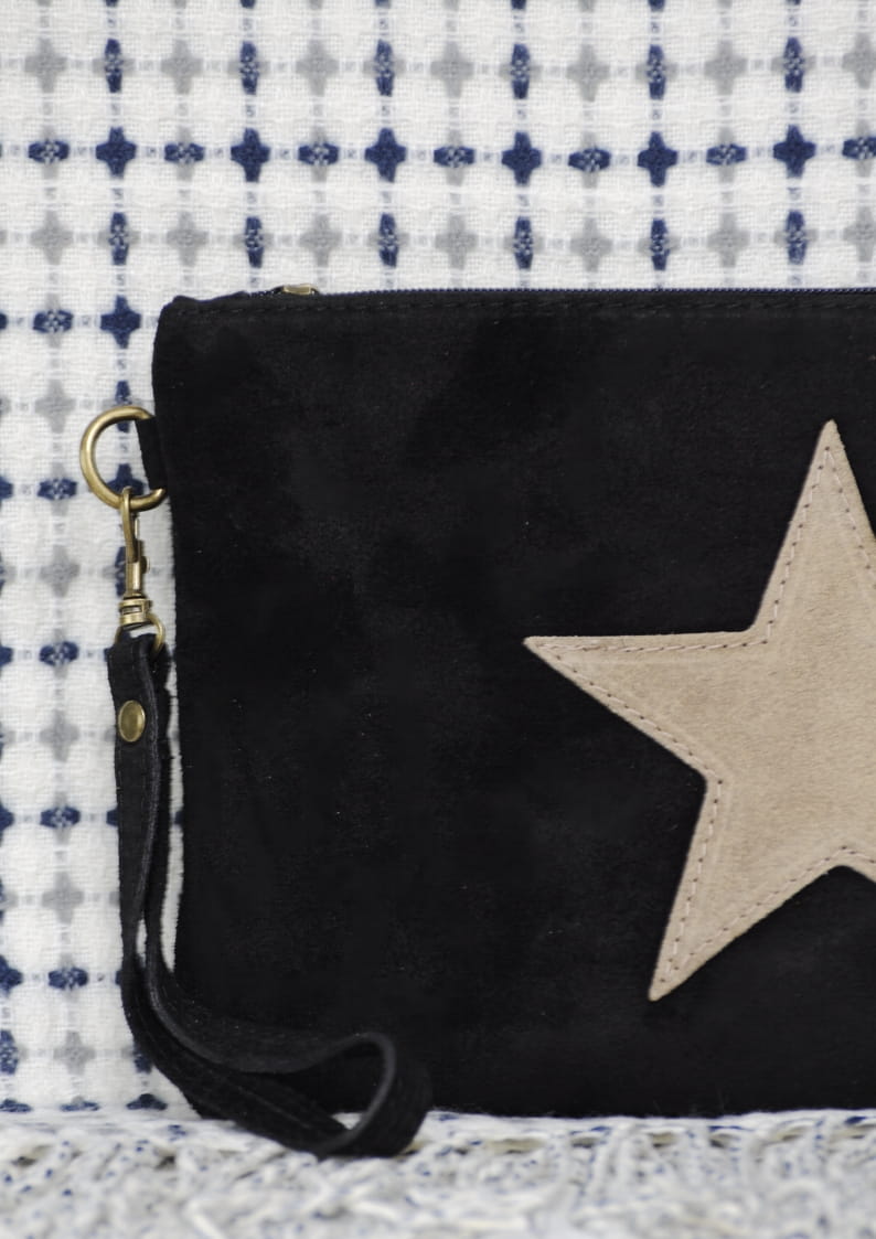 Kosmetyczka z czarnego zamszu z gwiazdką STAR