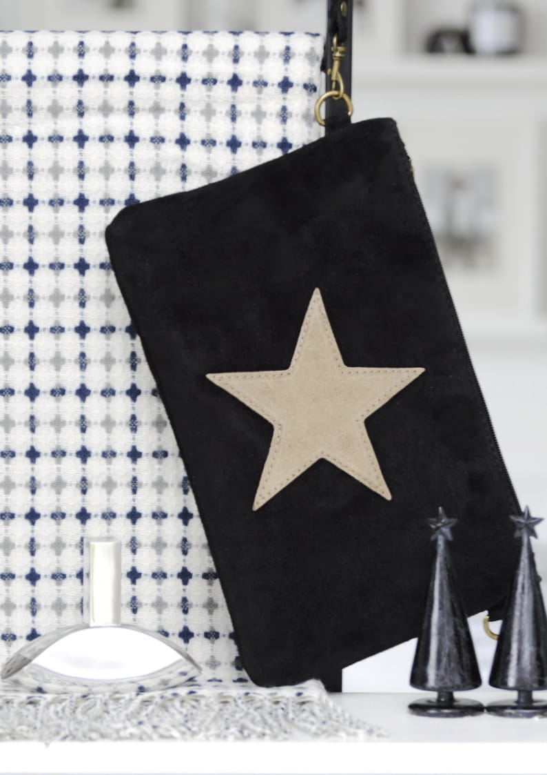 Zamszowa kosmetyczka z gwiazdką – elegancja w minimalistycznym wydaniu