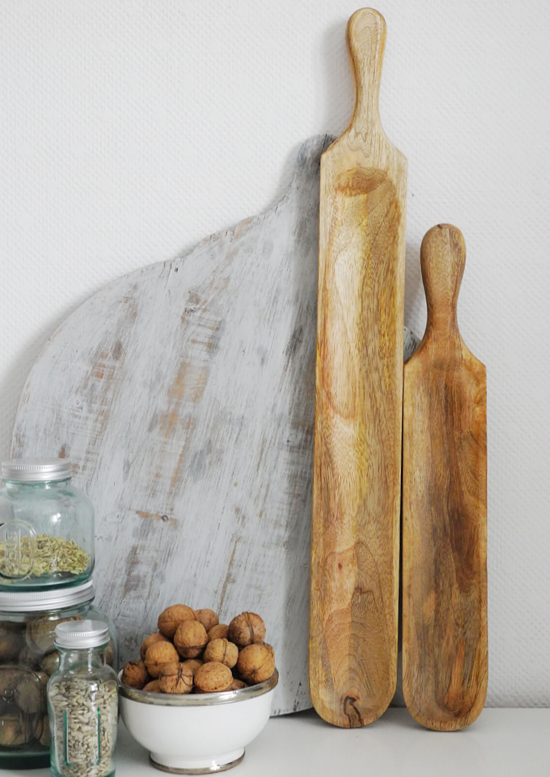 Deski zachwycają prostym, nowoczesnym designem. Ich naturalne drewno nadaje im rustykalny i przyjemny wygląd, który pasuje zarówno do klasycznych, jak i nowoczesnych aranżacji wnętrza. Po jednej stronie są efektownie zakończone wygodnymi uchwytami ułatwiającymi przenoszenie. Deski prezentują się ciekawie i serwowane przekąski będą eleganckim daniem, które urozmaici menu twojego przyjęcia.