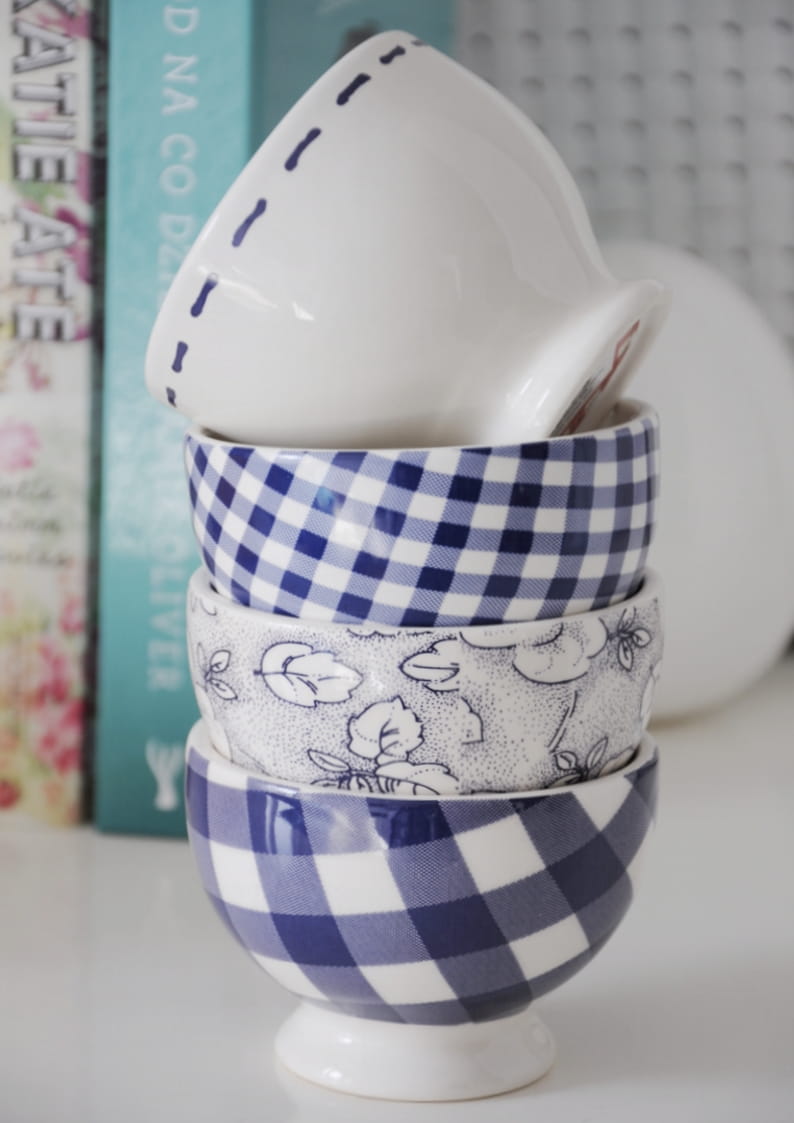 Małe jest piękne. Zestaw czterech mini miseczek utrzymanych w niebieskiej kolorystyce. Mimo, że wzór na każdej z nich jest inny to łączy je doskonale kolor. Dzięki temu komplet nie jest nudny tylko wyjątkowy i intrygujący. Doskonałe na małe "conieco". Kubuś Puchatek byłby zachwycony.