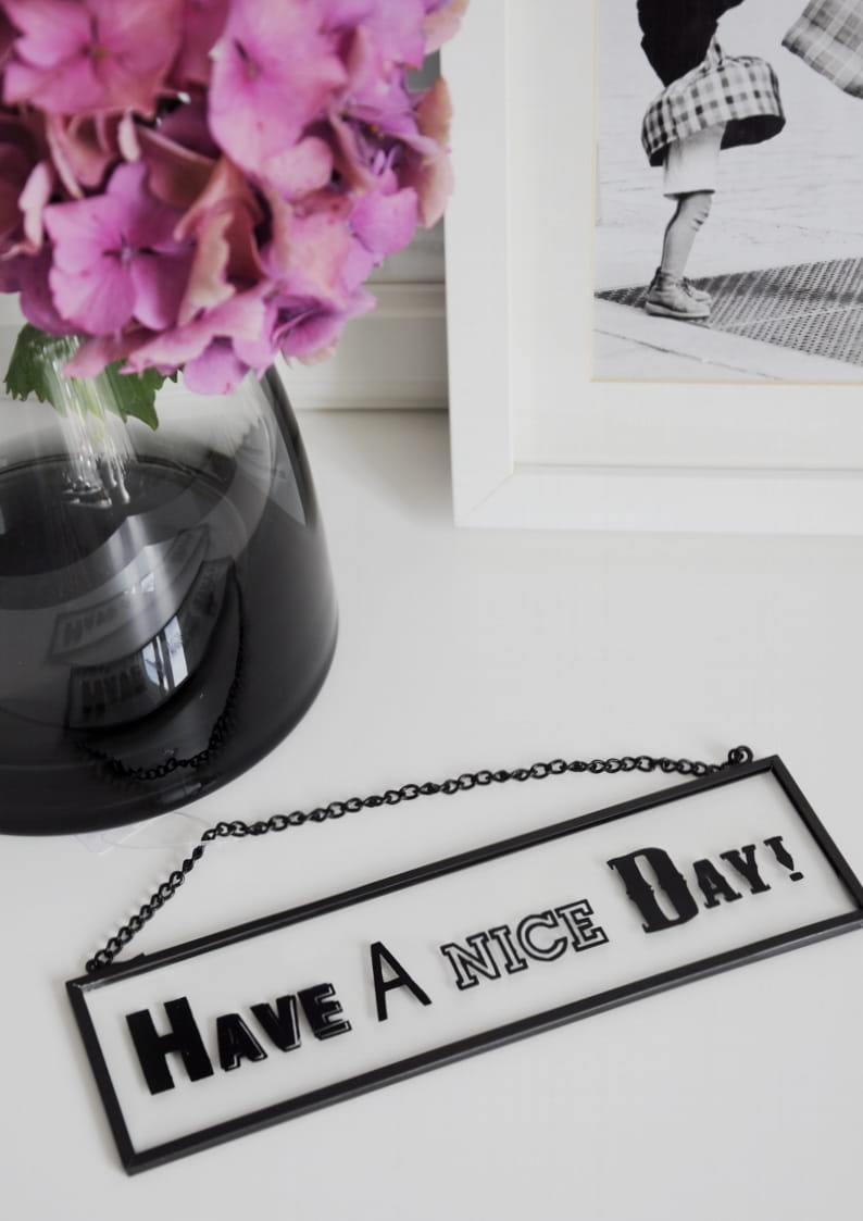 Szklany szyld z napisem "HAVE A NICE DAY" – elegancka dekoracja do każdego wnętrza