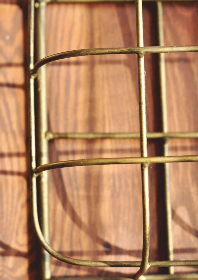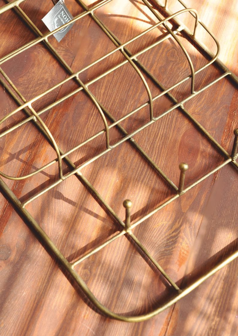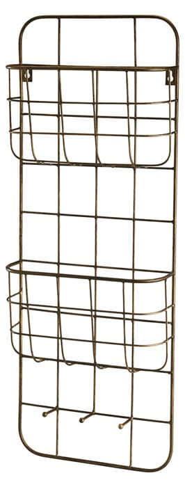 Metalowa półka z koszami Long to połączenie industrialnego designu i praktyczności. Jej ażurowa konstrukcja nadaje lekkości, a dwie półki na czasopisma, książki lub inne przedmioty oraz metalowe kołki ułatwiają organizację przestrzeni. Idealna do biura, gdzie pomoże utrzymać porządek w dokumentach, lub do domu jako nowoczesny gazetnik. Malowana proszkowo na kolor starego złotego metalu z czarnymi przecierkami, dodaje charakteru każdemu wnętrzu.