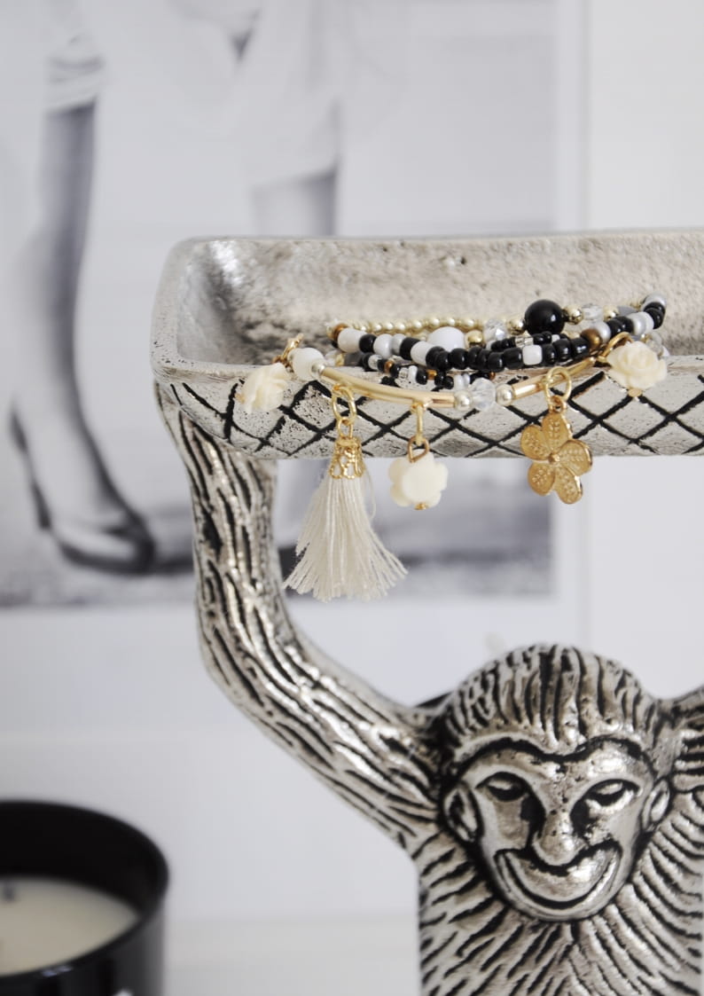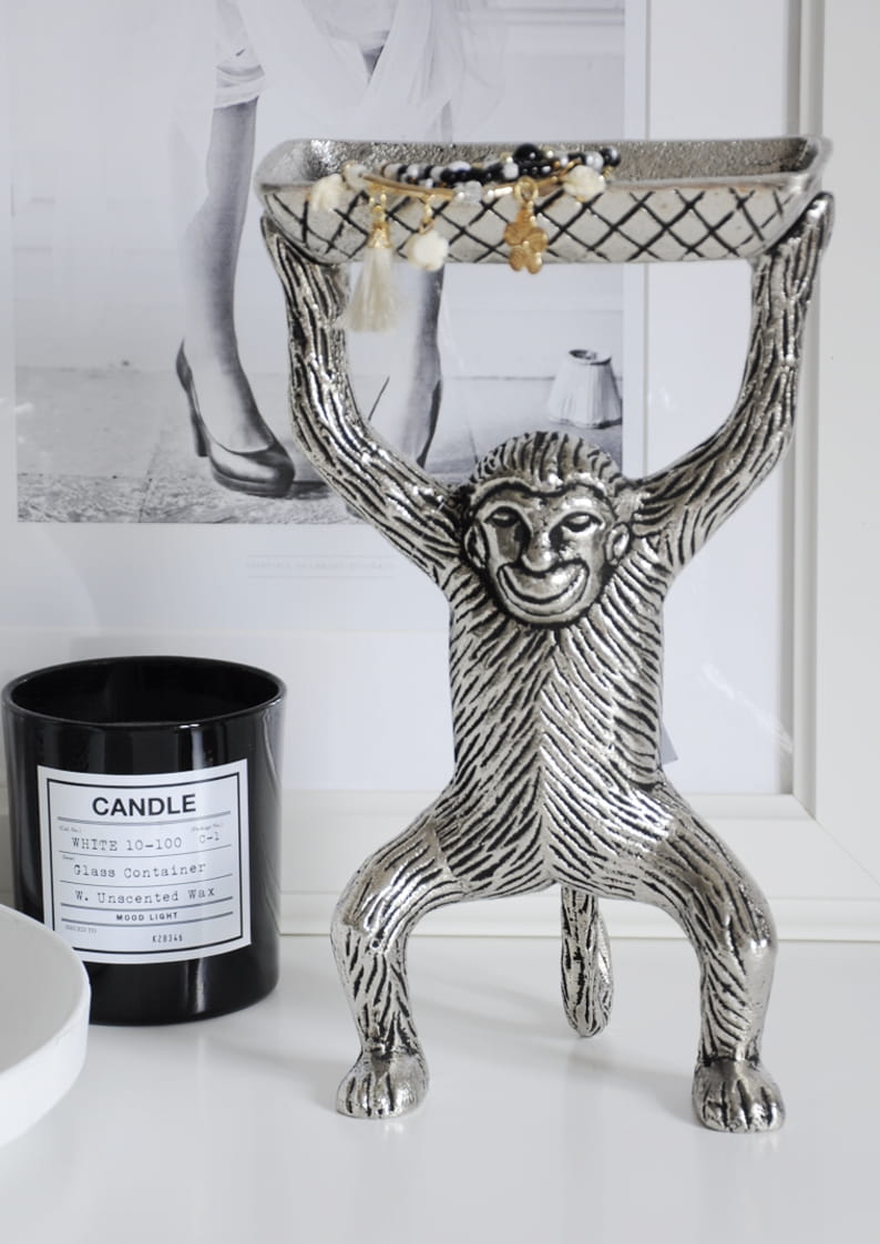 Praktyczność – tacka na głowie małpki to idealne miejsce do przechowywania biżuterii, kosmetyków czy małych akcesoriów.