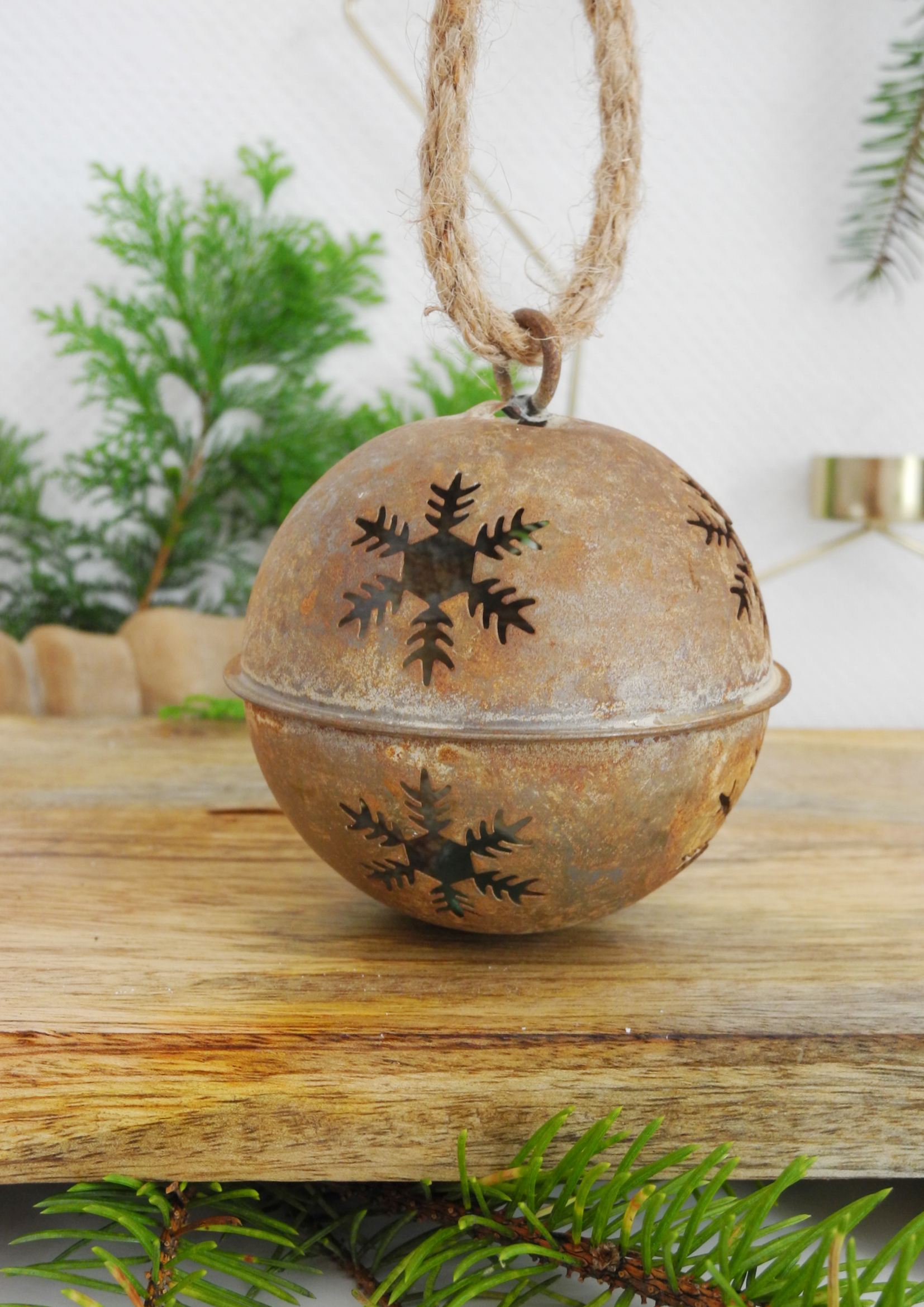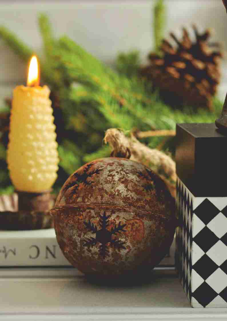 Metalowy dzwonek świąteczny w stylu vintage – urok Wabi-Sabi