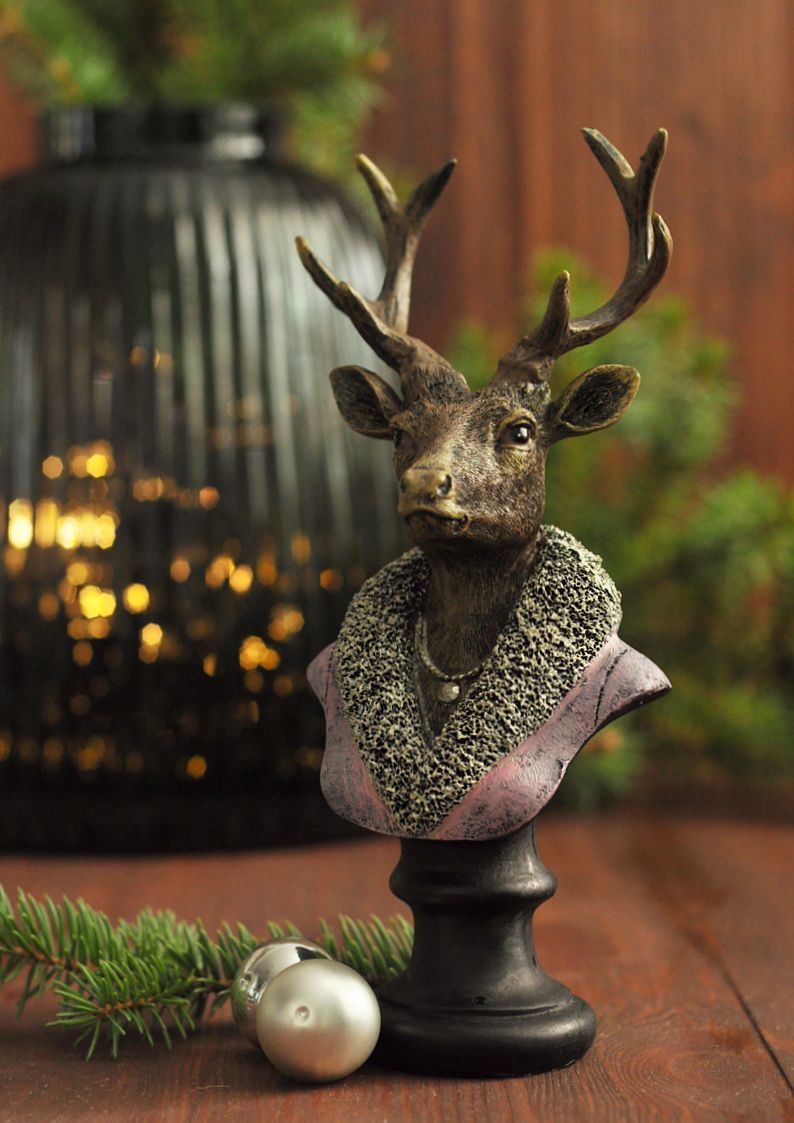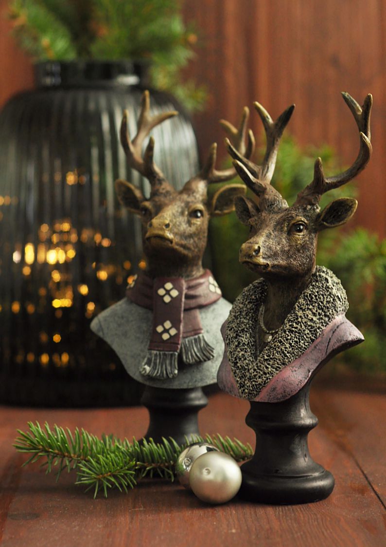 Figurka popiersie sarny w zimowym stroju – magiczna dekoracja świąteczna z klasą