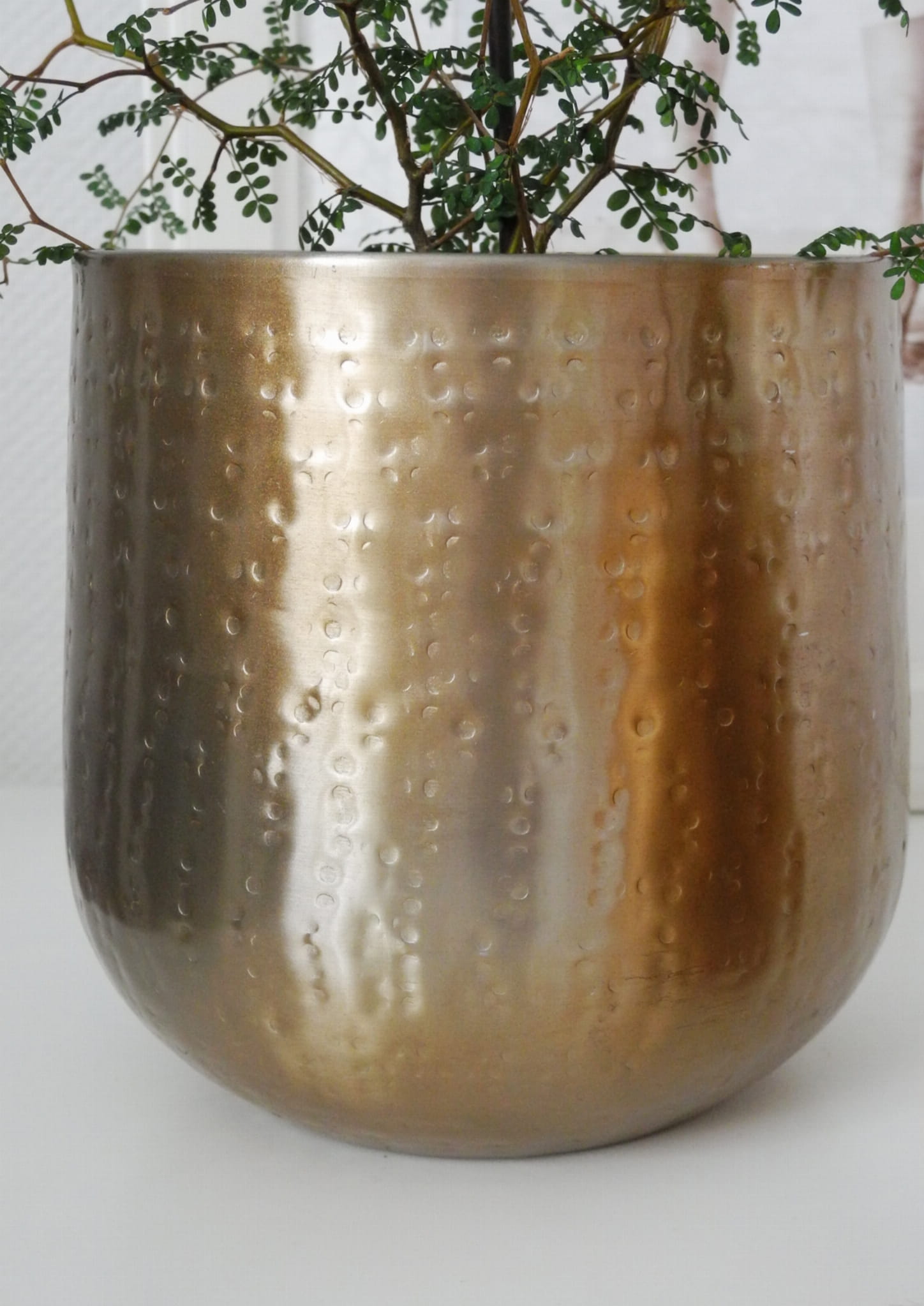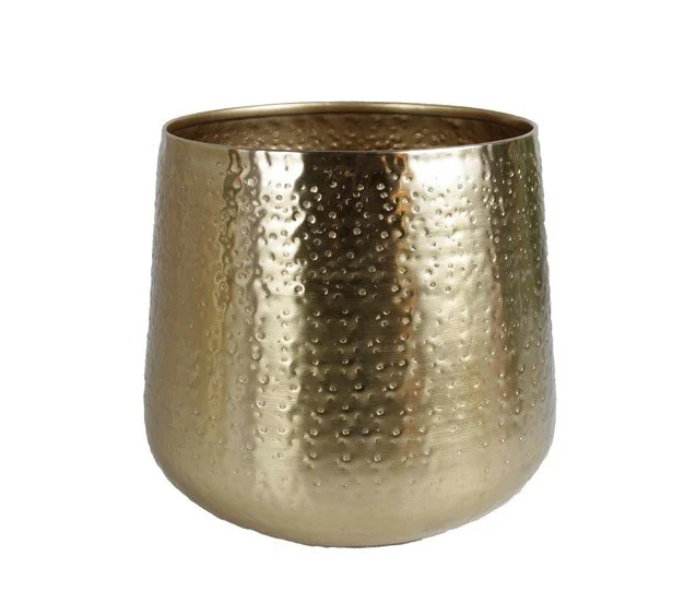 Ta złota osłonka to coś więcej niż zwykły dodatek – to prawdziwe rękodzieło z Indii, które nadaje wnętrzu orientalnego charakteru. Wykonana z metalu w kolorze starego złota, ozdobiona jest subtelnym młotkowanym wzorem, który dodaje jej wyjątkowego uroku. Dwie dostępne wielkości pozwalają dopasować osłonkę do różnych rozmiarów doniczek, a jej uniwersalna forma sprawia, że pasuje do każdego stylu wnętrza.