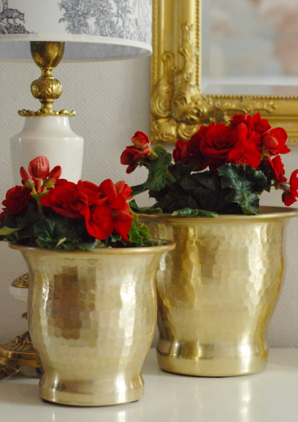 Osłonka metalowa na doniczkę – patynowane złoto, ręcznie młotkowana