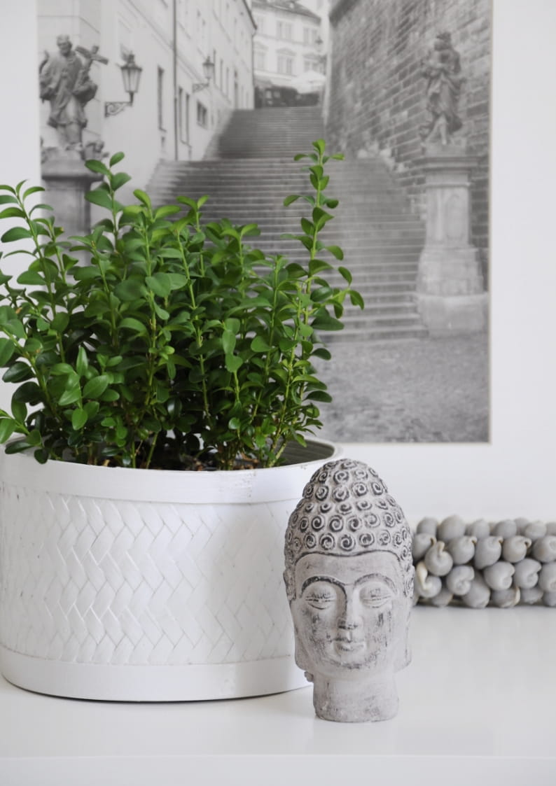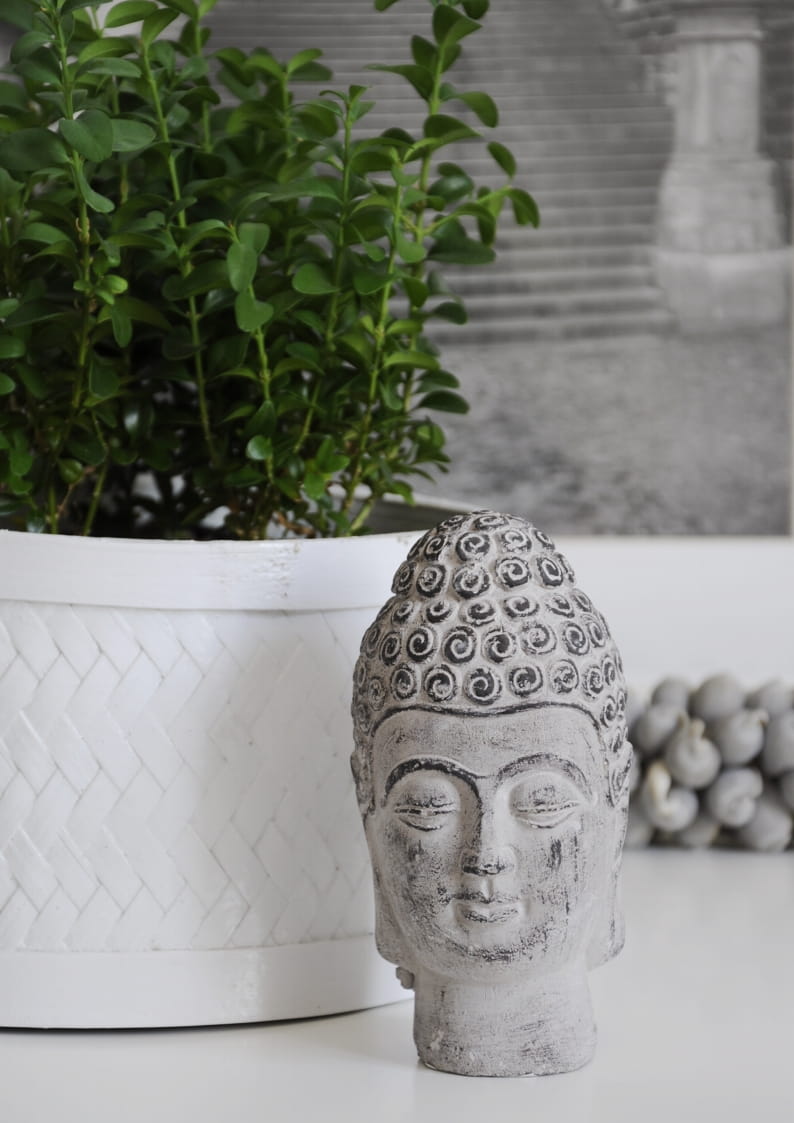 Głowa Buddy w kolorze szarym – orientalna dekoracja do Twojego wnętrza