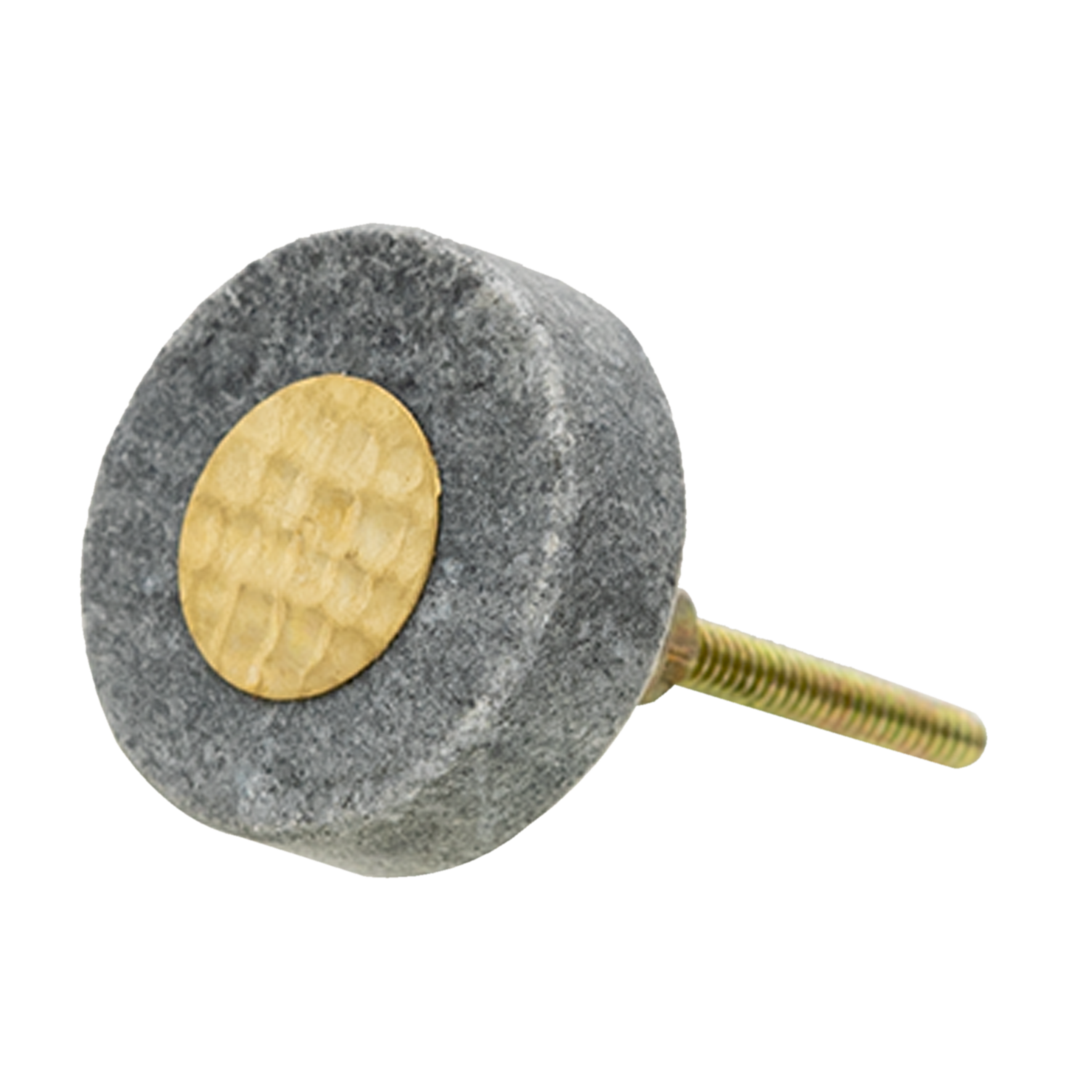 Marmurowa gałka meblowa – szary uchwyt z naturalnego kamienia i metalu w kolorze starego złota