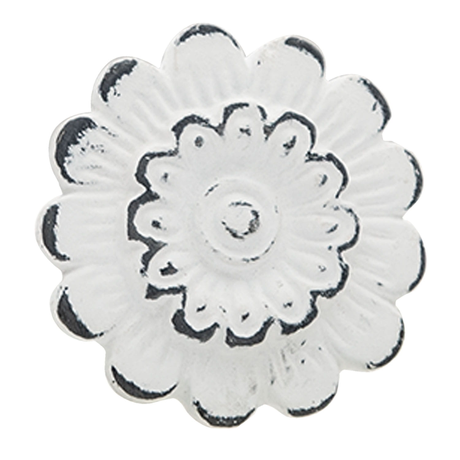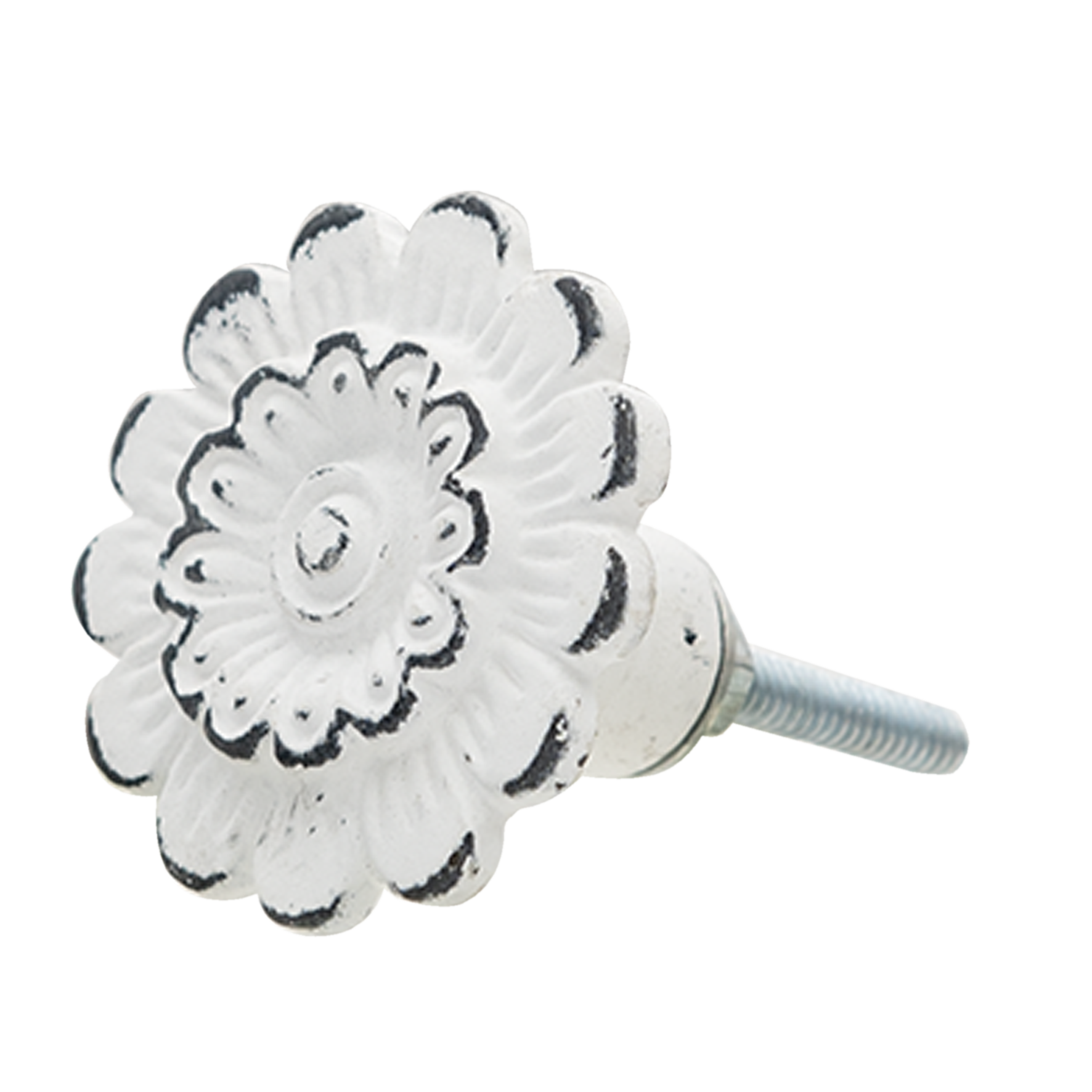 Biała metalowa gałka meblowa w kształcie kwiatka