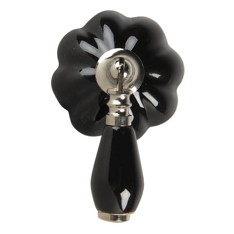 Czarny ceramiczny uchwyt do mebli z ruchomą częścią, popularnie znaną jako kołatka, charakteryzuje się eleganckim i stylowym designem, który świetnie komponuje się z różnymi rodzajami mebli. Ruchoma część uchwytu, czyli kołatka, umożliwia łatwe otwieranie i zamykanie drzwiczek, szuflad czy innych elementów mebli, zapewniając przy tym wygodę użytkowania. Kołatka została zaprojektowana z dbałością o detale, aby zachować funkcjonalność i estetykę w jednym.