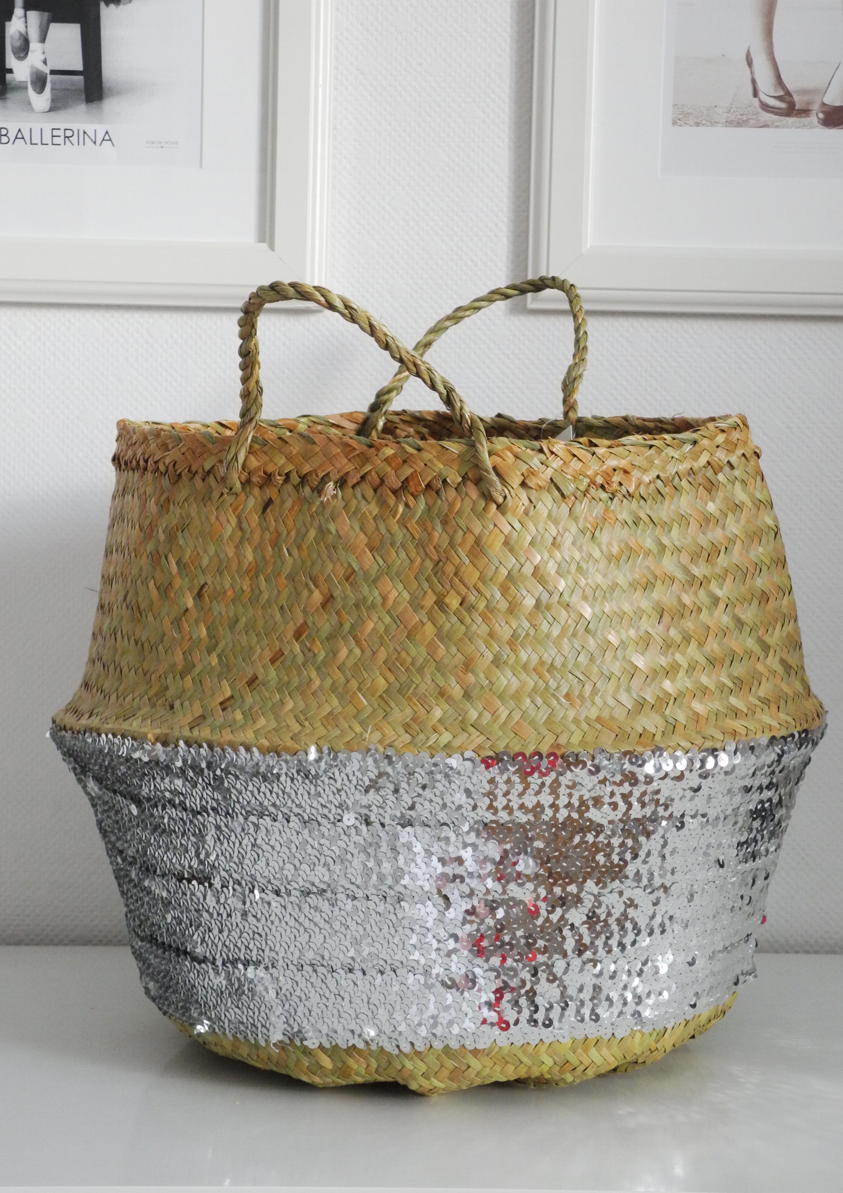 Kosz naszywany srebrnymi cekinami SILVER