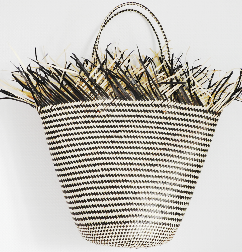 Koszyk wyplatany z trawy morskiej FANCY zachwyca swoim wyjątkowym wzorem, utkanym z dwóch kontrastujących kolorów – naturalnego i czarnego. Dodatkowym akcentem jest fantazyjny pióropusz, który nadaje jej lekkości i charakteru. To połączenie prostoty i finezji sprawia, że torba idealnie wpisuje się w trendy boho i pasuje idealnie do naturalnego stylu życia.