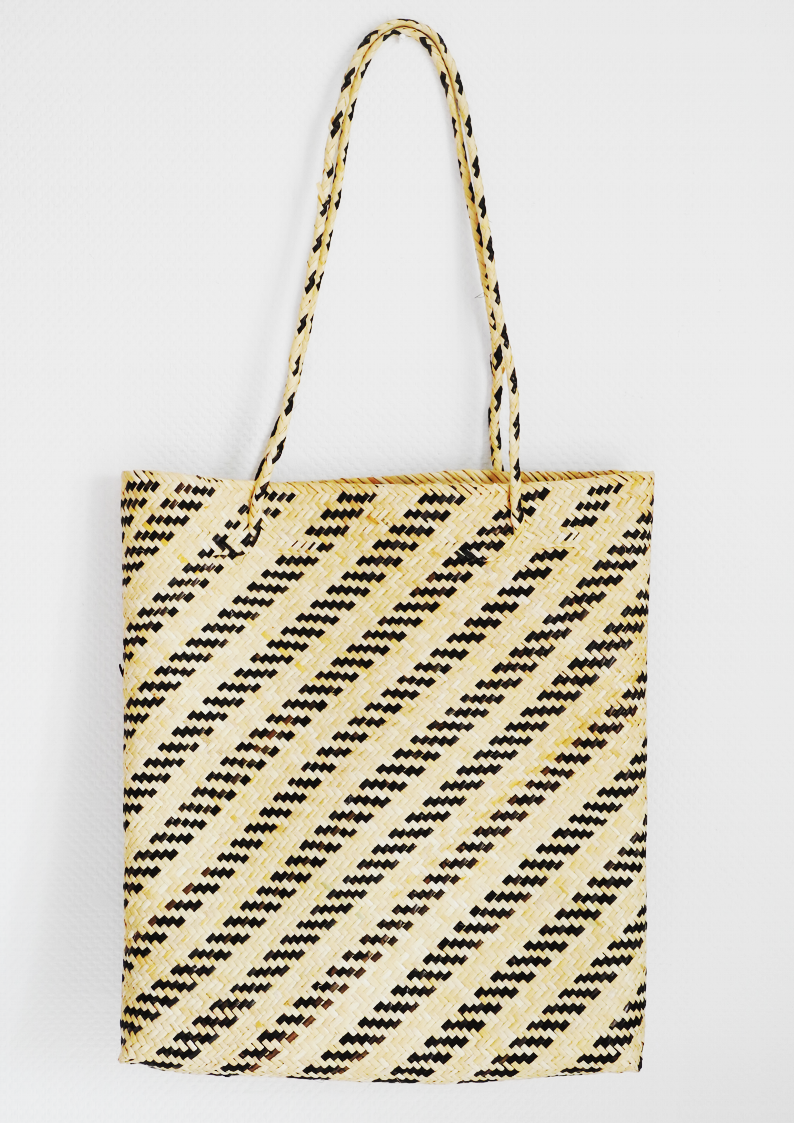 Pleciona z rattanu w kontrastujących kolorach – naturalnym i czarnym – torebka BORNEO zachwyca swoją prostotą i elegancją. Ten dwukolorowy wzór dodaje jej charakteru, sprawiając, że każdy szczegół przyciąga uwagę. Płaski model to dodatkowy atut – idealnie leży na półce, stole czy w Twoich rękach.
