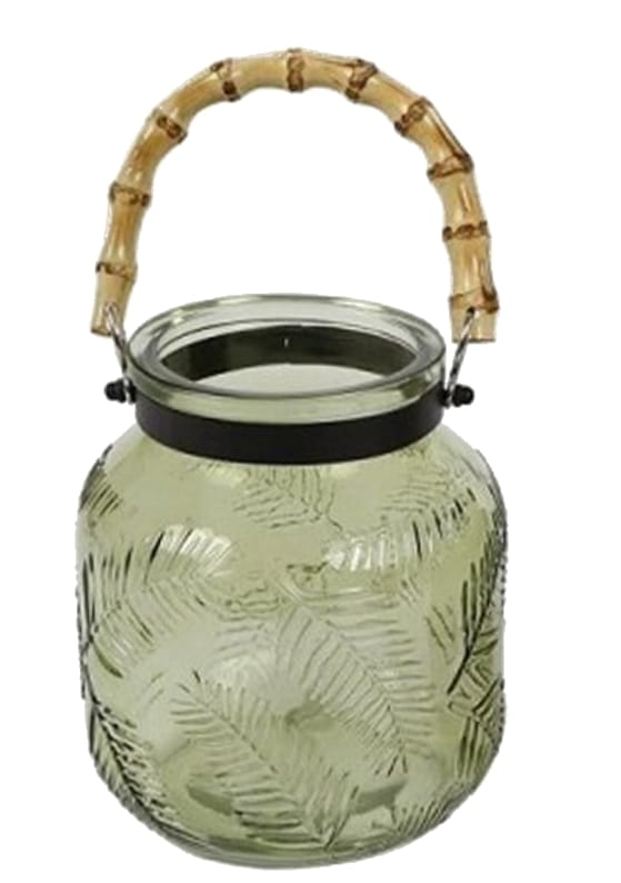 Lampion z zielonego szkła z roślinnym motywem NATURE
