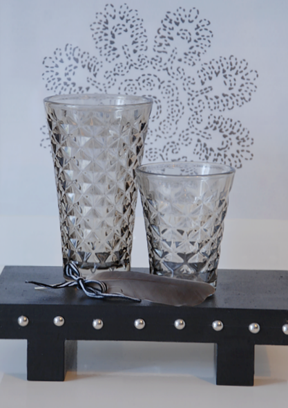 Świecznik z przydymionego szkła łączy estetykę z praktycznym zastosowaniem. Przydymiony kolor dodaje głębi i elegancji, a fakturowana powierzchnia szkła tworzy subtelną grę światła i cienia. To dodatek, który przyciąga uwagę, ale nie dominuje aranżacji.