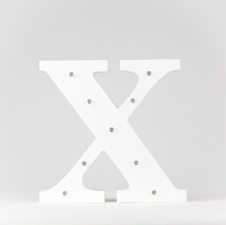 Biała litera X z lampkami LED do dekoracji. Działa na baterie i może pełnić funkcję delikatnej lampki. Sprawdzi się w salonie, sypialni, pokoju dziecka oraz jako subtelna dekoracja świąteczna nawiązująca do xmas.