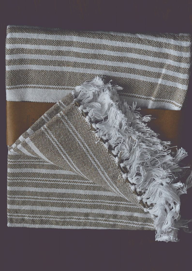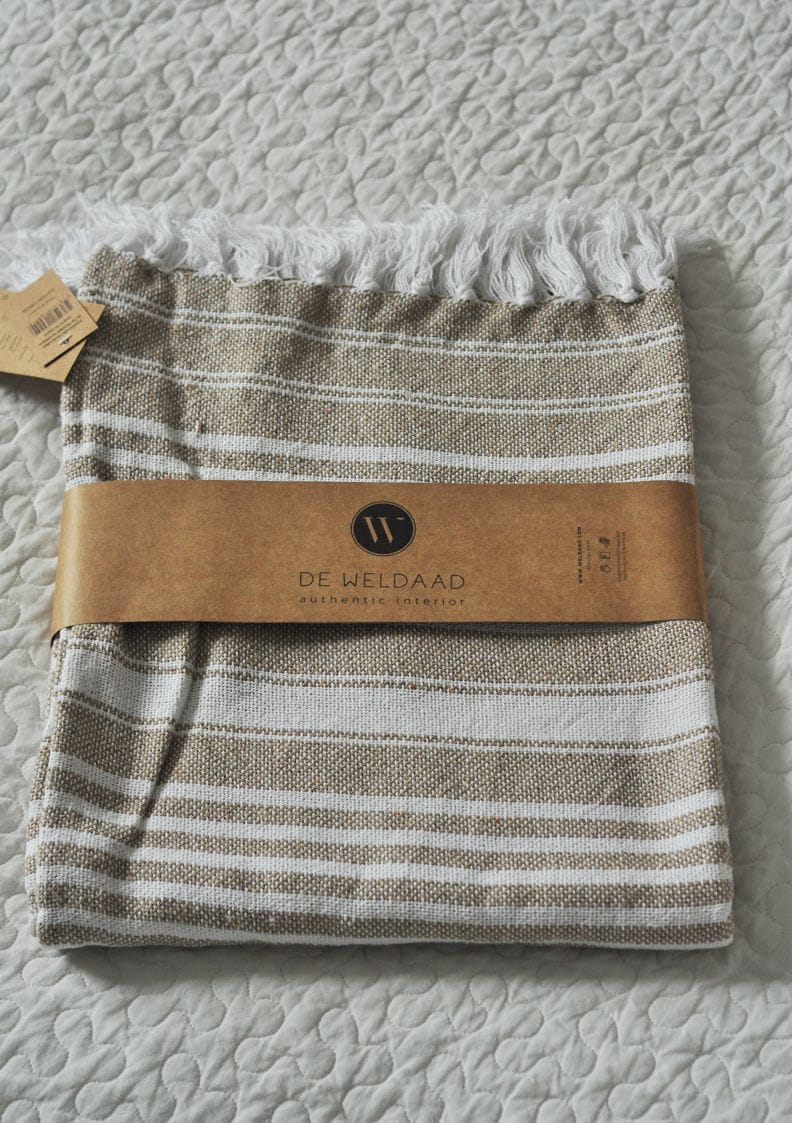 Na pierwszy rzut oka wygląda jak elegancki pled w beżowo-białe pasy, ale… to nie wszystko. Bo ten lekki cud z frędzlami to hammam – czyli tradycyjny turecki ręcznik, który postanowił wyjść z łaźni i zrobić karierę w nowoczesnym domu. I dobrze mu idzie!