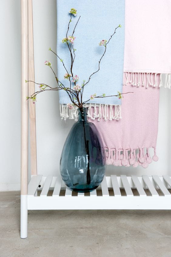Zgaszony róż to kolor, który pasuje do każdego wnętrza – czy to scandi, boho, czy nowoczesnego. Pompony na krótszych bokach dodają mu uroku i charakteru.