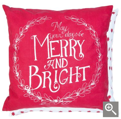 Stylowy napis „May your days be Merry and Bright” otoczony delikatnym motywem gałązek tworzy kompozycję, która przyciąga wzrok i wprowadza pozytywny nastrój. To nie tylko tekstylna ozdoba, ale też codzienne przypomnienie, by cieszyć się małymi chwilami i świąteczną atmosferą.