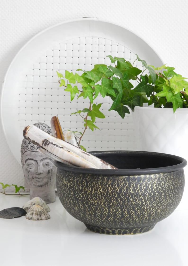 Dekoracje i przedmioty w orientalnym stylu wróciły do łask, a ta ręcznie wykonana miska w stylu boho to prawdziwa perełka. Dzięki zastosowaniu tradycyjnych metod rzemieślniczych każda miska jest unikalna i pełna charakteru. Malowana na czarno z subtelnym, złotym wzorem, który nadaje jej wyjątkowego blasku. Przecierki na powierzchni sprawiają, że wzór nabiera połysku, a wnętrze miski pozostaje w klasycznym, czarnym kolorze. Idealna do stylowych wnętrz w stylu boho lub scandi boho, doskonale wpisuje się w nowoczesne aranżacje pełne ciepła i osobistego charakteru.