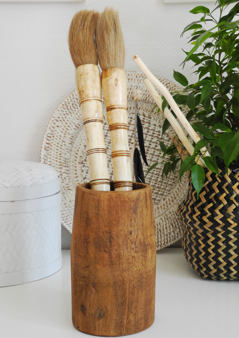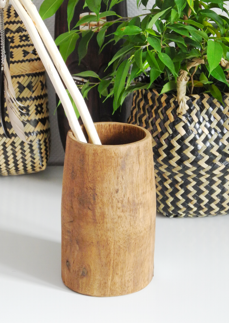 Ten drewniany pojemnik to prawdziwy kawałek egzotyki. Każdy z nich jest niepowtarzalny, z charakterystycznymi dla rękodzieła niedoskonałościami. Wpasuje się w styl etno, nadając Twojemu wnętrzu odrobinę orientalnego uroku. Idealny na biurko, komodę lub jako praktyczny, ale elegancki pojemnik w każdym innym pomieszczeniu Twojego domu.