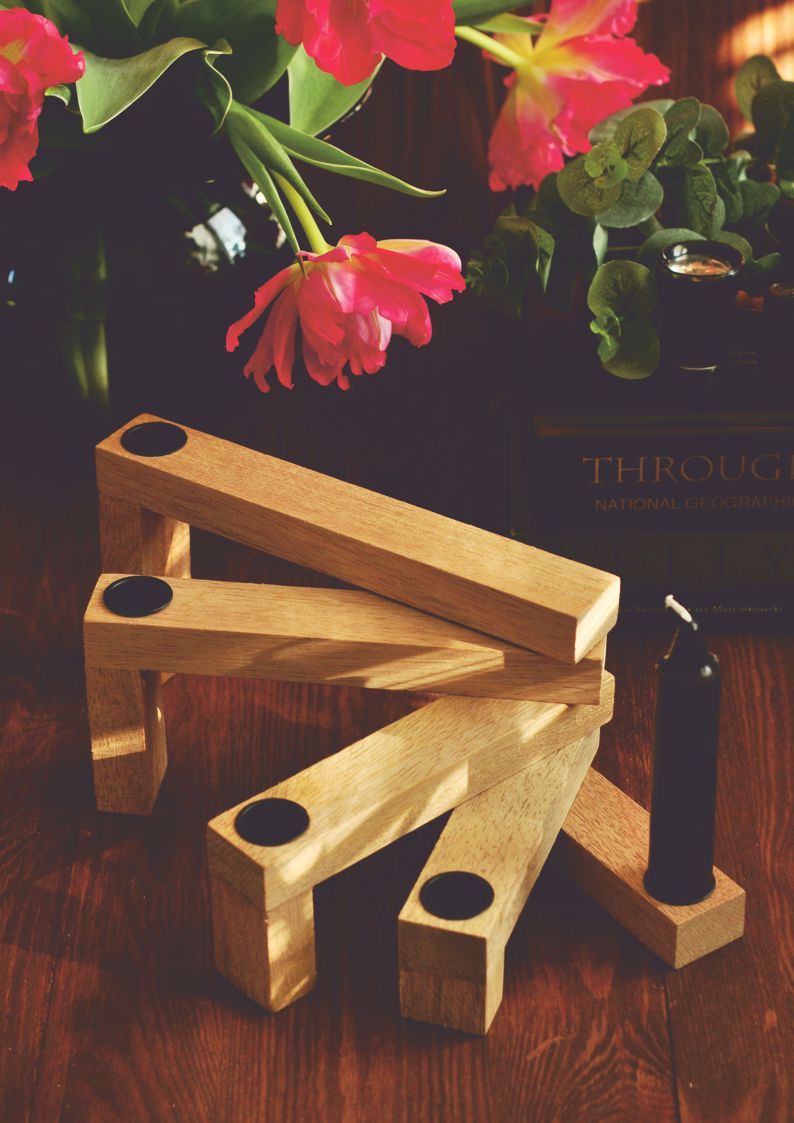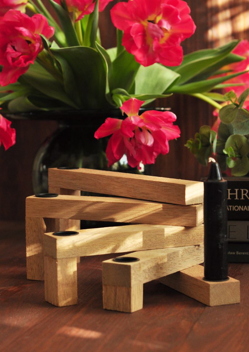 Twój Rytuał Światła i Spokoju – Drewniany Rozkładany Świecznik NATURAL