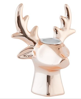 Wprowadź do swojego domu magię świąt dzięki wyjątkowemu świecznikowi w kształcie głowy jelenia. Jego elegancki design i subtelny miedziany odcień czynią go idealnym dodatkiem do bożonarodzeniowych dekoracji.