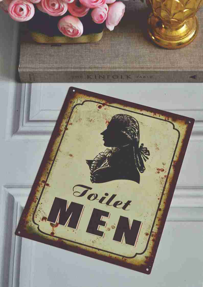 Szyld metalowy TOILET MEN w stylu vintage na drzwi toalety to elegancki i nostalgiczny element, który może dodać charakteru i unikalnego wyrazu Twojej przestrzeni.