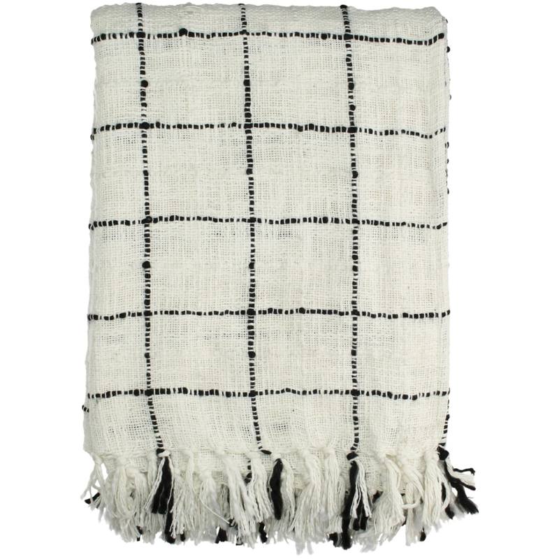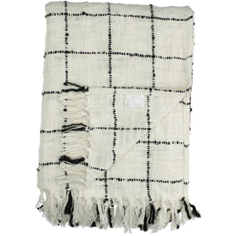Pled bawełniany biało-czarny w kratę 130x170 cm - CHECK