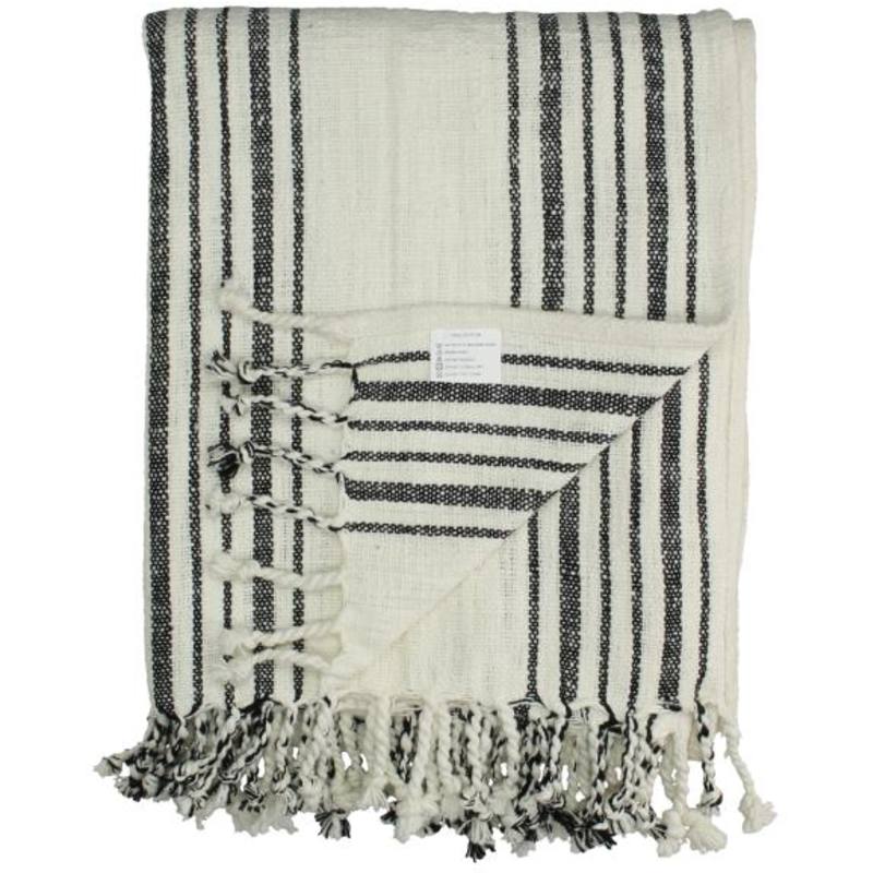Pled bawełniany biało-czarny w paski 130x170 cm - STRIPES