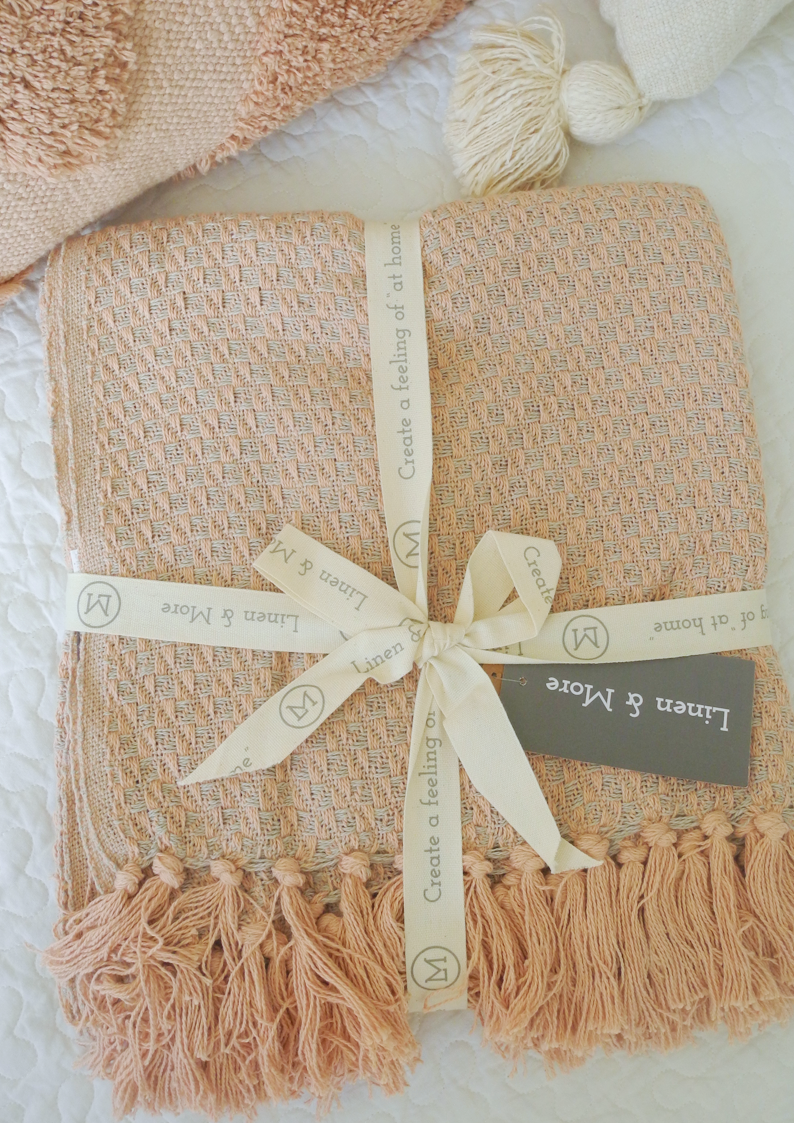 To prawdziwy element dekoracyjny, który wprowadzi do Twojego domu przytulny klimat. Jego stonowana kolorystyka pasuje zarówno do nowoczesnych, jak i klasycznych aranżacji. Dzięki „waflemu” wzorowi i różowym chwostom pled stanie się modnym akcentem, który przyciągnie uwagę i doda wnętrzu charakteru.