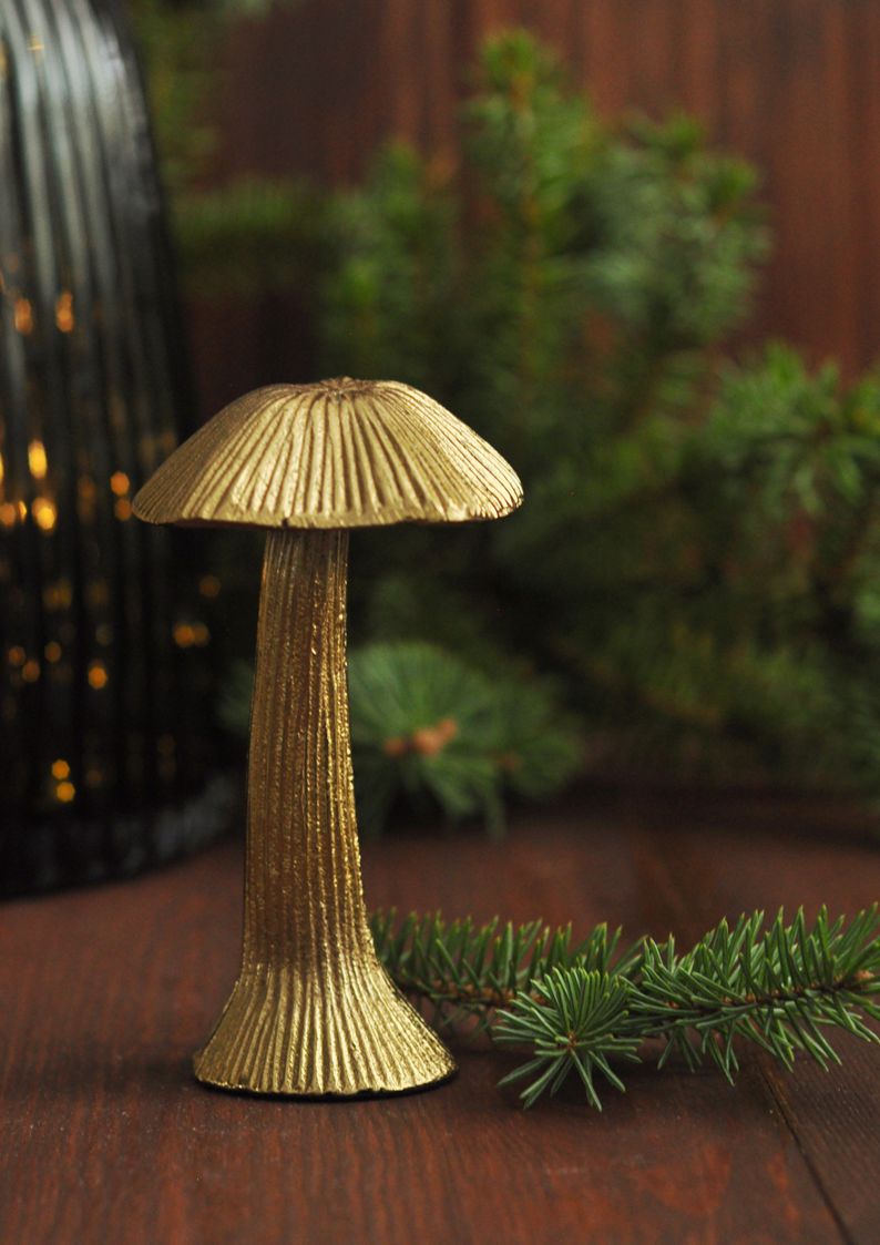 Grzybki to klasyczny motyw świąteczny – kiedyś stanowiły ozdoby choinkowe i pojawiały się na kartkach bożonarodzeniowych. W nowej, metalowej wersji wracają w zdecydowanie bardziej eleganckim wydaniu. Złoty grzybek świetnie uzupełnia dekoracje bożonarodzeniowe, nie wprowadzając kiczu ani przesady.