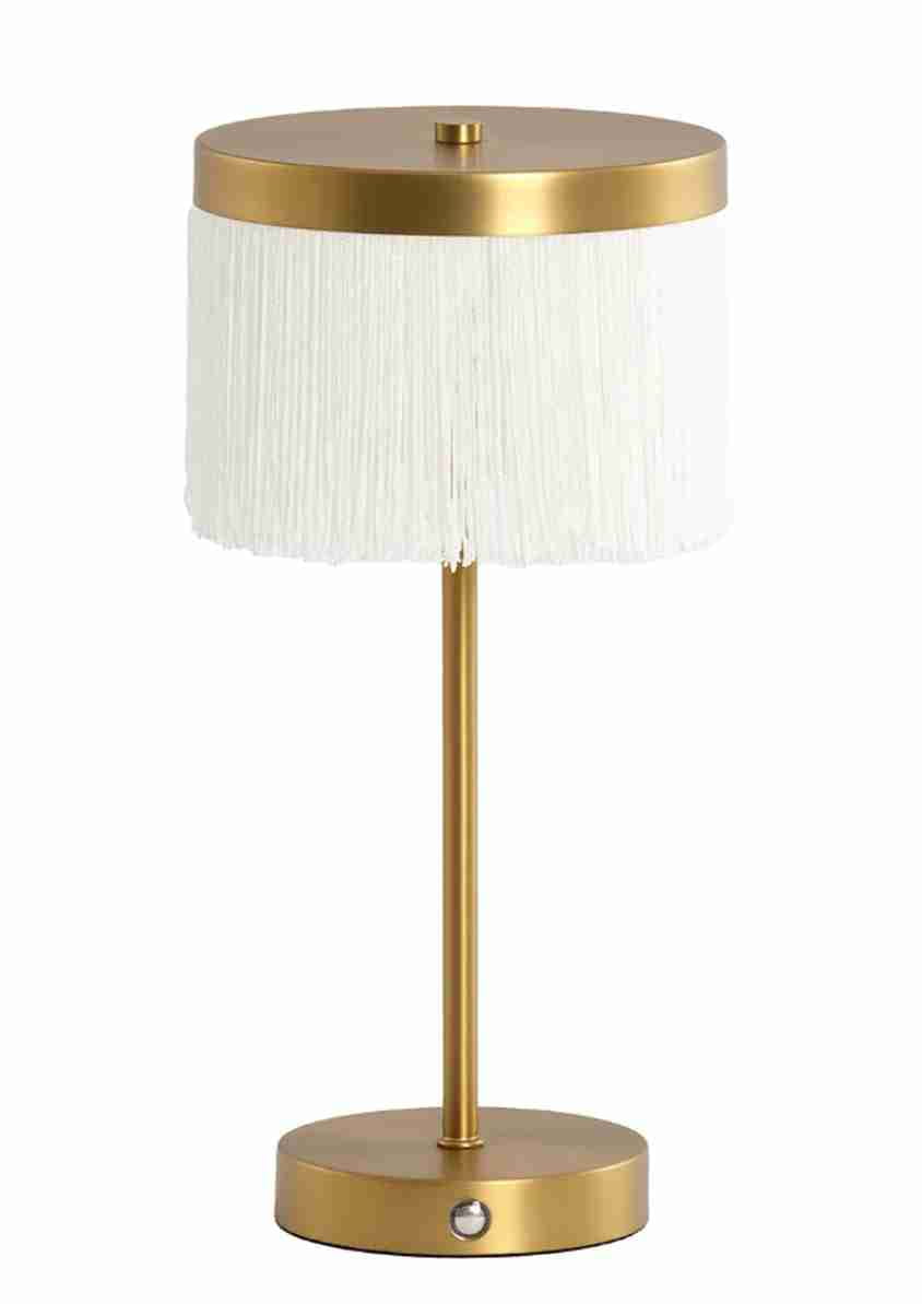 Złota lampa stołowa bezprzewodowa z frędzlami