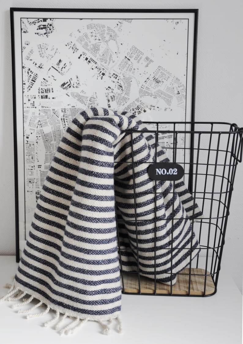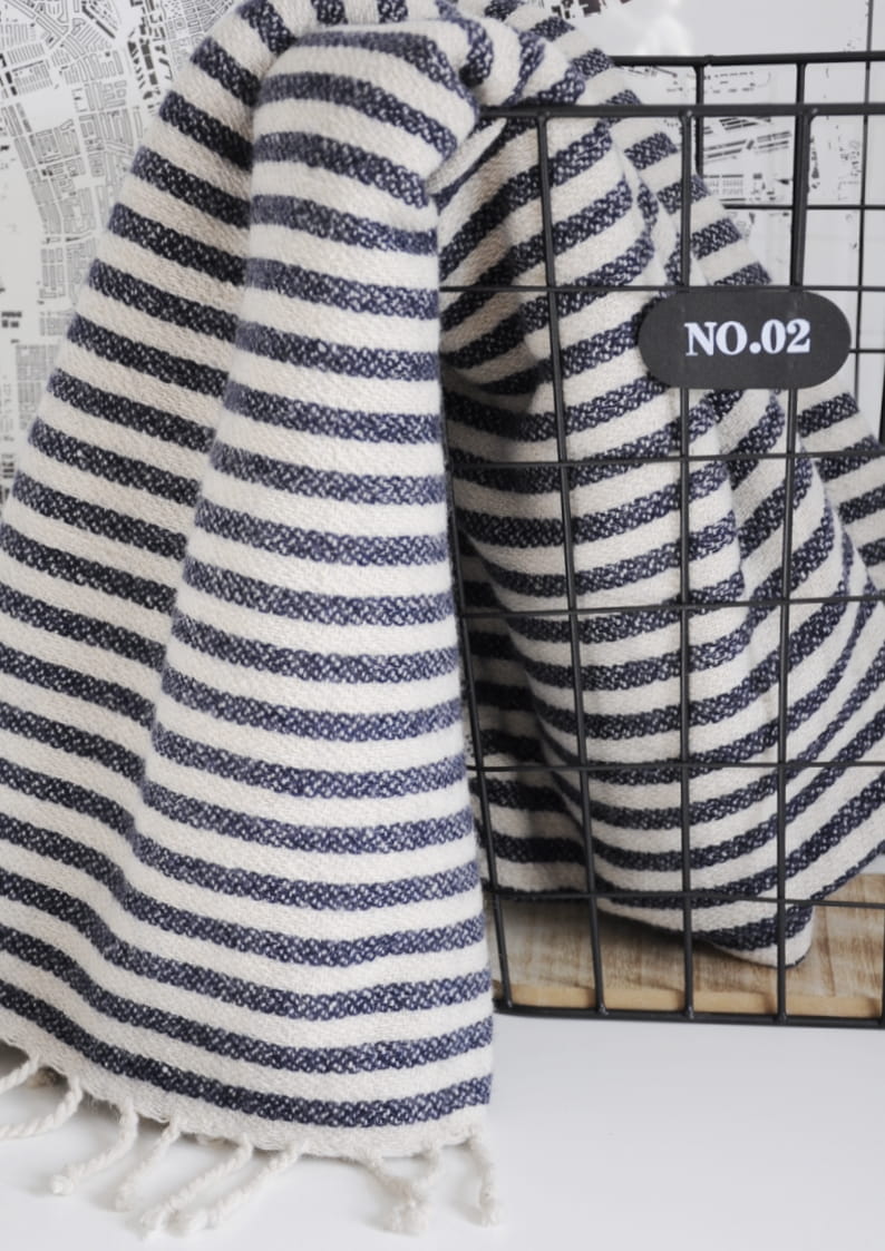 Koc w biało-niebieskie paski INDIGO STRIPES