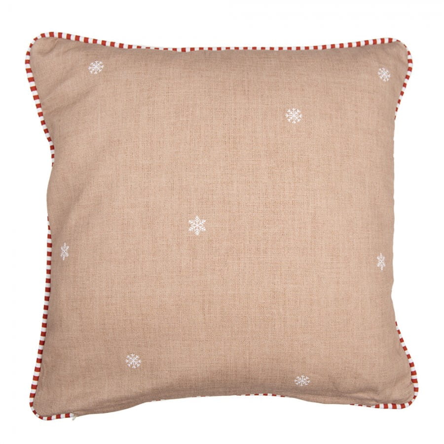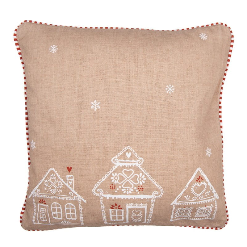Nie musisz od razu ubierać choinki, by poczuć magię grudnia. Ta świąteczna poszewka z piernikowymi domkami sprawi, że Twoje wnętrze od razu nabierze ciepłego, bożonarodzeniowego klimatu. Na beżowym tle pojawiają się ilustracje piernikowych domków i płatków śniegu, tworząc urokliwą, zimową scenę rodem z kartki świątecznej. To detal, który zmienia wszystko – od kanapy po fotel przy kominku.