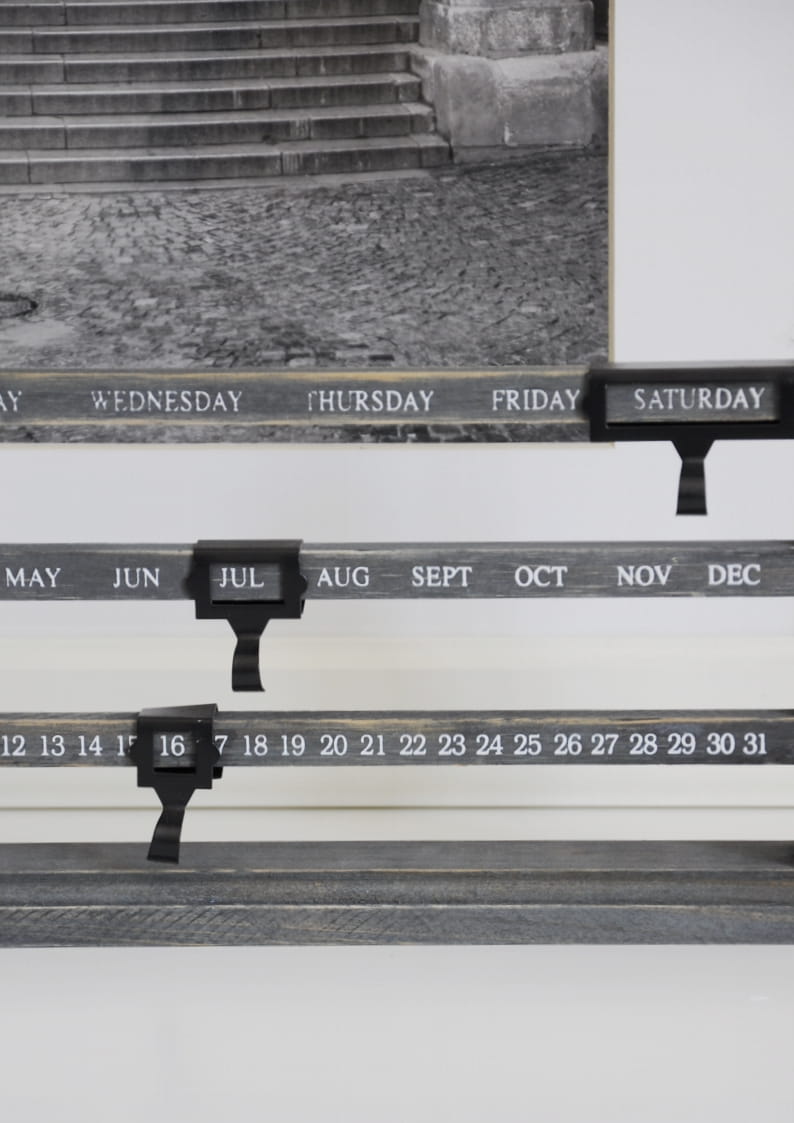 Wieloletnia funkcjonalność – dzięki swojej konstrukcji, kalendarz jest odpowiedni do użytkowania przez wiele lat. Dzięki prostemu systemowi zmiany daty, wystarczy tylko przesunąć metalowe ramki, by zmieniać dni, miesiące i lata.