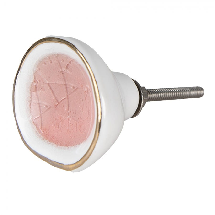 Różowa gałka ceramiczna ze złotą obwódką - Pink