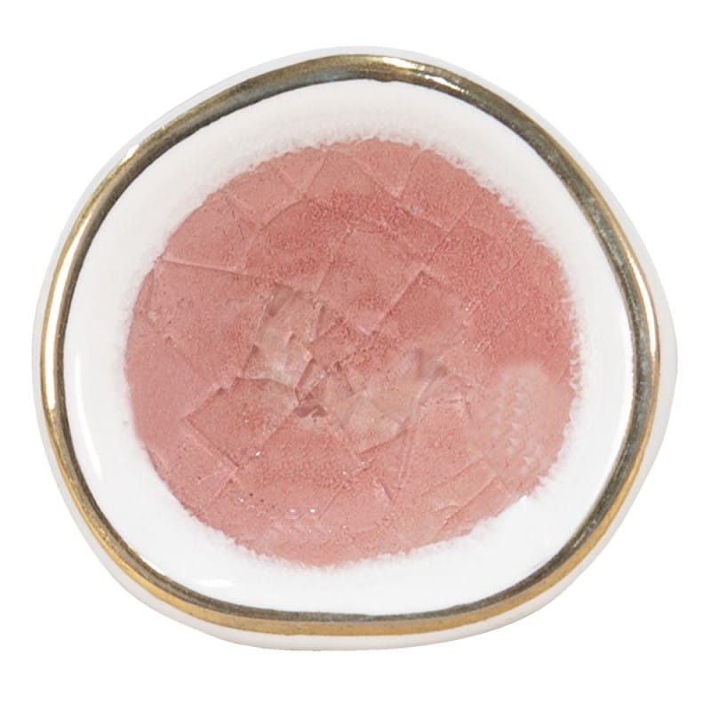 Gałka posiada piękny, organiczny kształt, który podkreślony jest jasną kolorystyką, głównie złamanej bieli. Jest to kolor uniwersalny, który doskonale komponuje się z różnymi stylami wnętrz, dodając im elegancji i subtelności. Różowy środek gałki oraz złota otoczka dodają jej uroku i oryginalności.