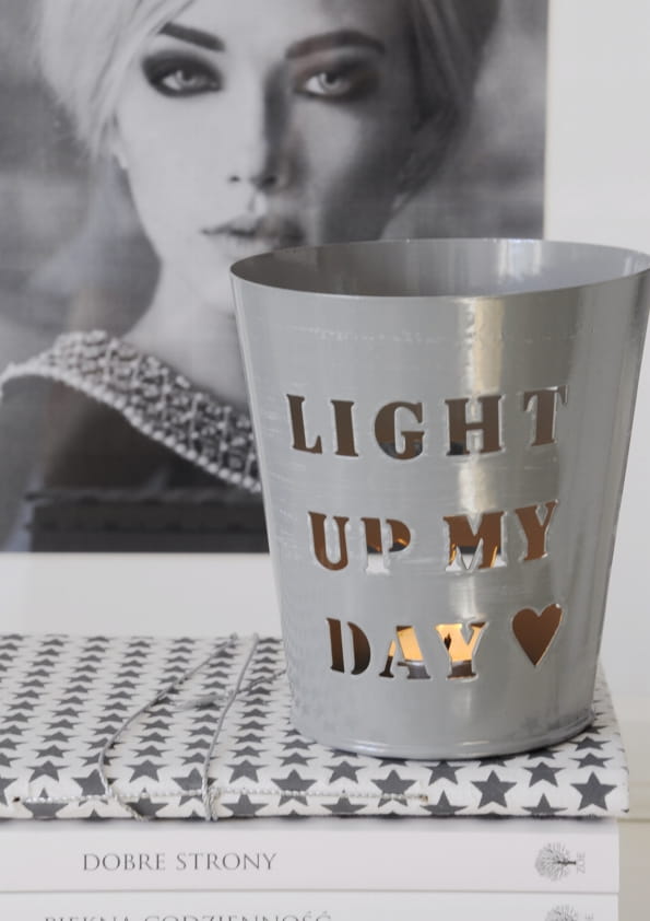 Dzięki ażurowemu wzorowi i subtelnemu kolorowi lampion szary z wyciętym tekstem wprowadza do wnętrza przytulność i nastrojowe światło. Idealny do postawienia na parapecie, stole, balkonie czy tarasie. To stylowa dekoracja do salonu, sypialni lub ogrodu, która sprawdza się także podczas romantycznych kolacji czy wieczornego relaksu.